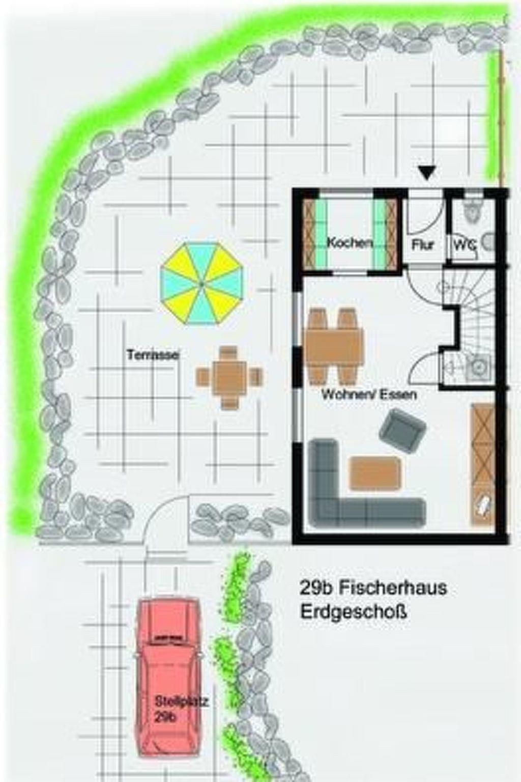 Distances (linear, approx.): Distance to airport: 130,00 km; Distance to cafés/ restaurants: 0,10 km; Distance to lake: 0,50 km; Distance to railway station: 25,00 km; Distance to shopping: 0,50 km; Distance to the sea: 2,00 km; Next location: 8,00 km;