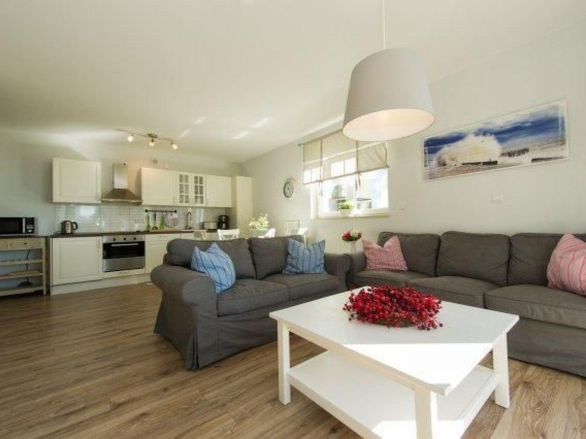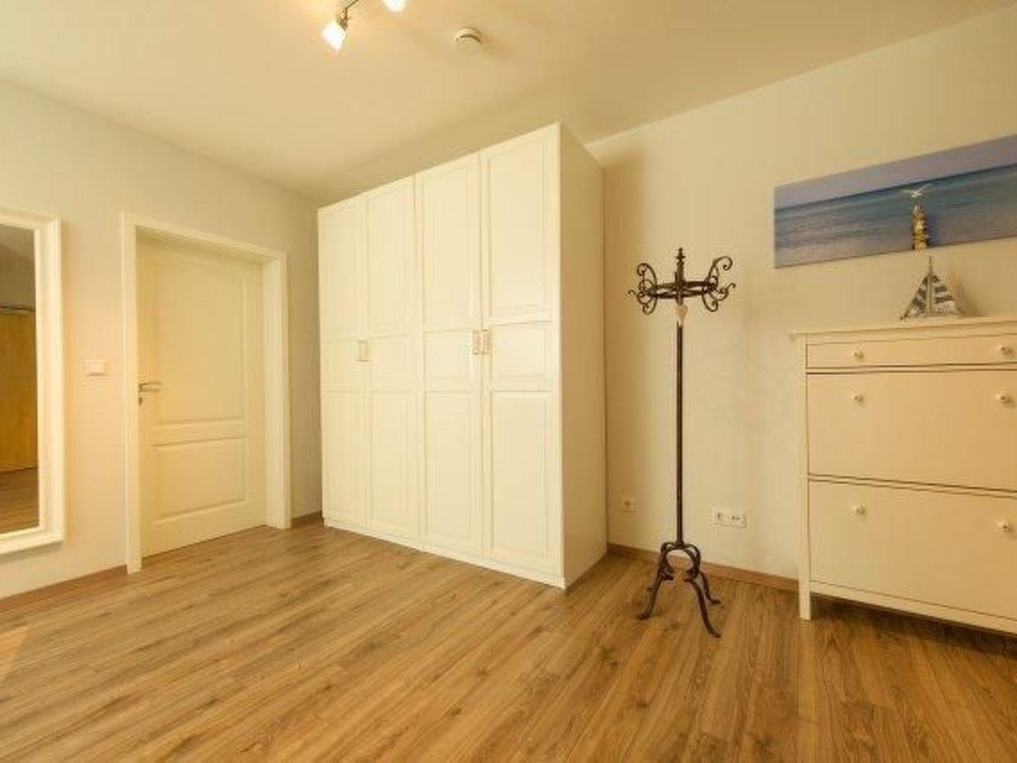 The spacious 3-room flat is modern and furnished to a high standard and has a terrace with a wonderful view of the Göhrener Südstrand.bicycles can be parked outside the house in a bicycle shed.one free parking space per flat is available to each guest directly at the house. Free W-LAN available in the flat. Living space: 75 m² 3-room flat Large entrance area with large wardrobe, coat rack and shoe cupboard. Spacious living area with couch and coffee table, sideboard with large flat-screen TV and CD radio system, dining table with 5 chairs. Fitted kitchen integrated into the living room, equipped with: 3-ring ceramic hob, large oven, extractor bonnet, microwave, fridge with freezer compartment, dishwasher, toaster, coffee machine, kettle and various kitchen utensils. 1 bedroom with double bed (180 x 200 cm) and flat screen TV. 1 bedroom with double bed (160 x 200 cm). 1 bathroom with shower, WC and hairdryer. 1 terrace with garden furniture. The entire flat is equipped with underfloor heating. Non-smoking! (Smoking is allowed on the terrace).