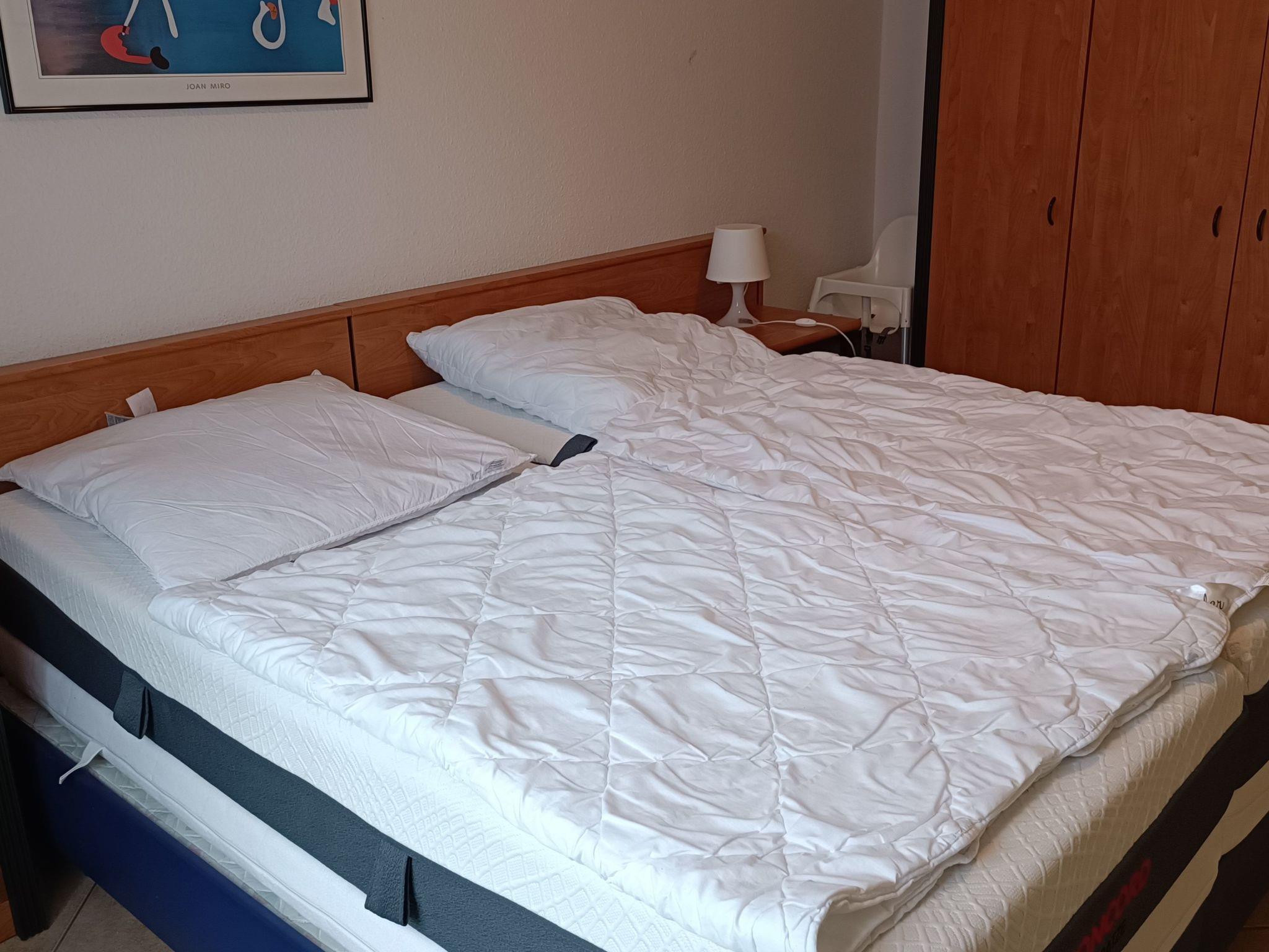1 bedroom with a double bed (180 x 200 cm), bedside tables and large wardrobe.