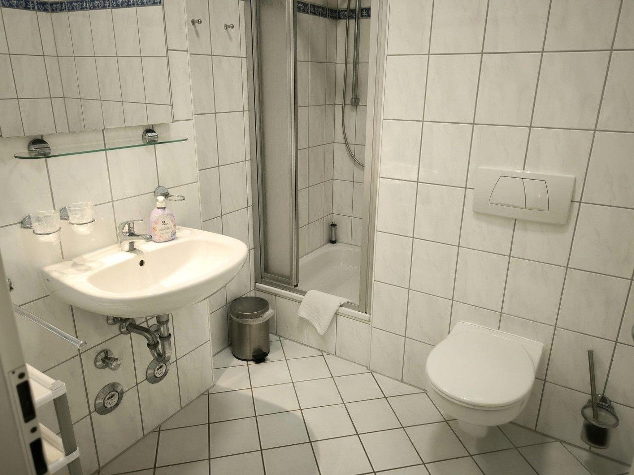 Living space: 45 m² for max. 4 persons. Entrance area. 1 living room with pull-out sofa bed for two people, 1 small coffee table, sideboard, TV cabinet with TV, DVD player and radio/CD system, 1 dining table with 4 chairs. Fitted kitchen separated from the living area, equipped with 4-ring ceramic hob and oven, extractor bonnet, large fridge with freezer compartment, sink, dishwasher, toaster, coffee machine, kettle, egg cooker, blender and various kitchen utensils. 1 bedroom with rattan bed (180 x 200 cm) and large wardrobe, shoe cabinet, standing mirror and chest of drawers with drawers and fold-out changing table and alarm clock radio. 1 bathroom with shower, WC and hairdryer. Free W-LAN!
