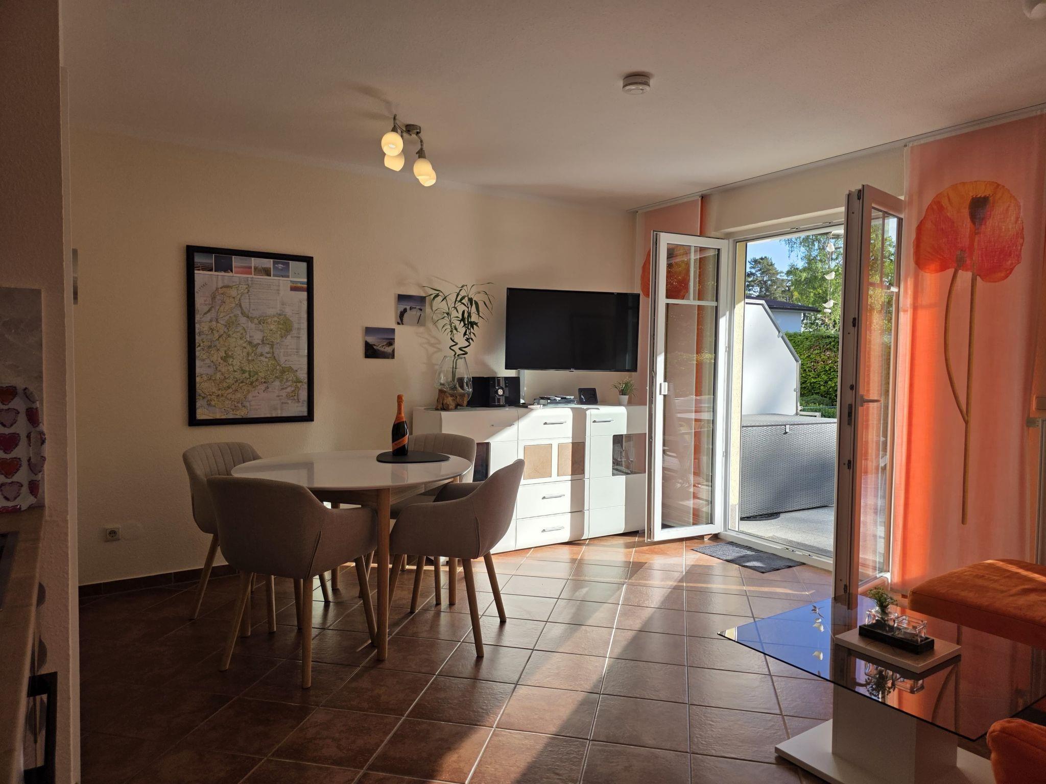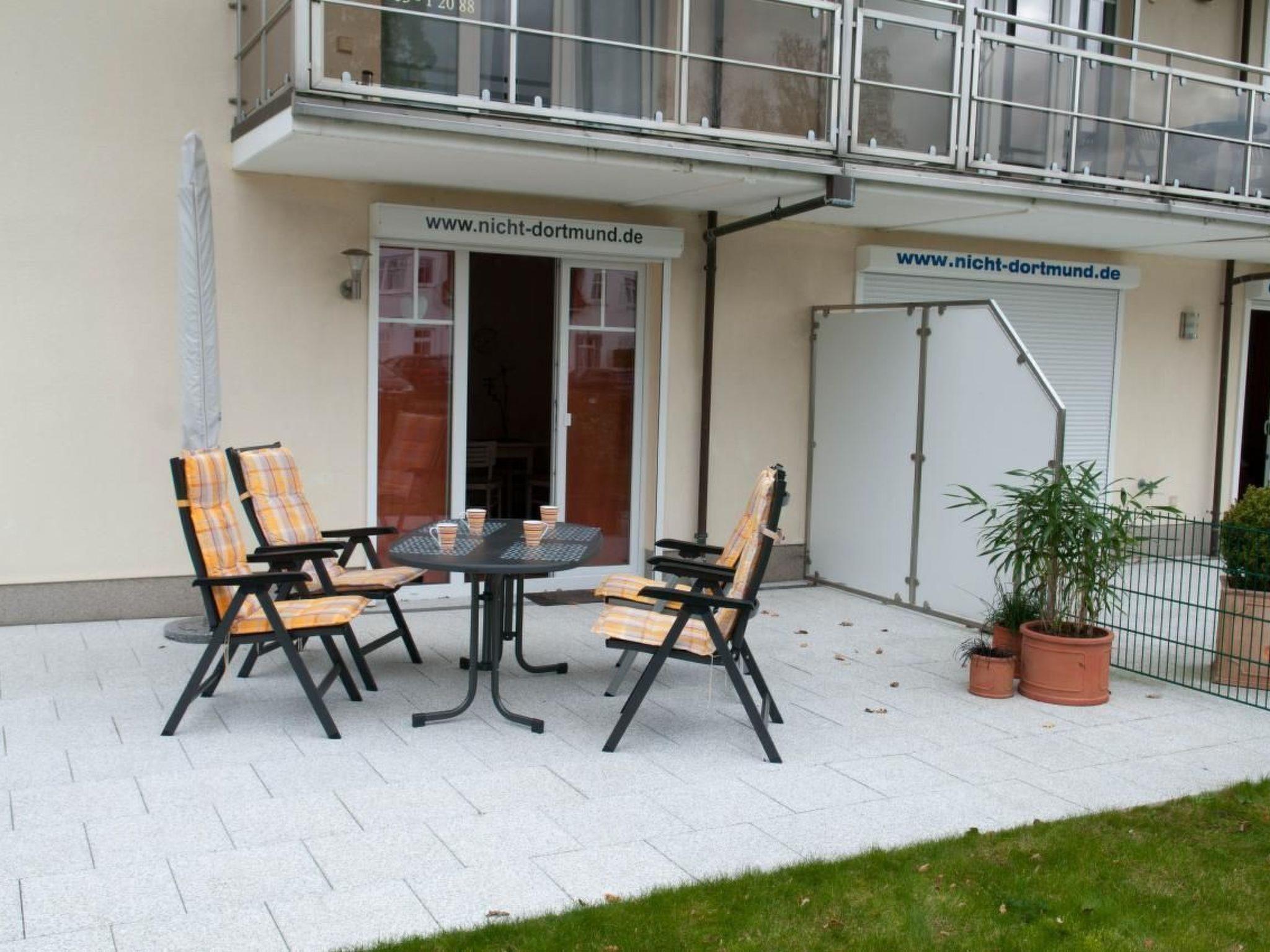 Comfortable, quiet 2-room holiday flat (58 sqm incl. 2 terraces) for 2 people on the ground floor. Underground car park parking space included. Very quiet location directly at the spa gardens. Only 50 metres to the beach! The modern house in which the holiday flat is located was newly built in 2005. All windows have shutters.