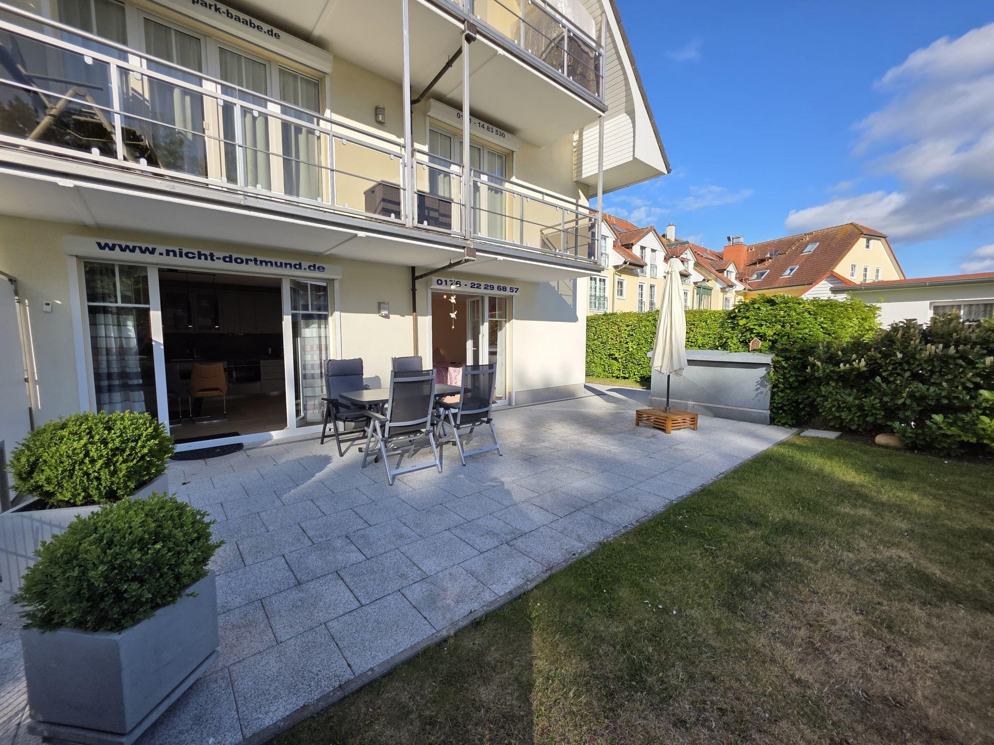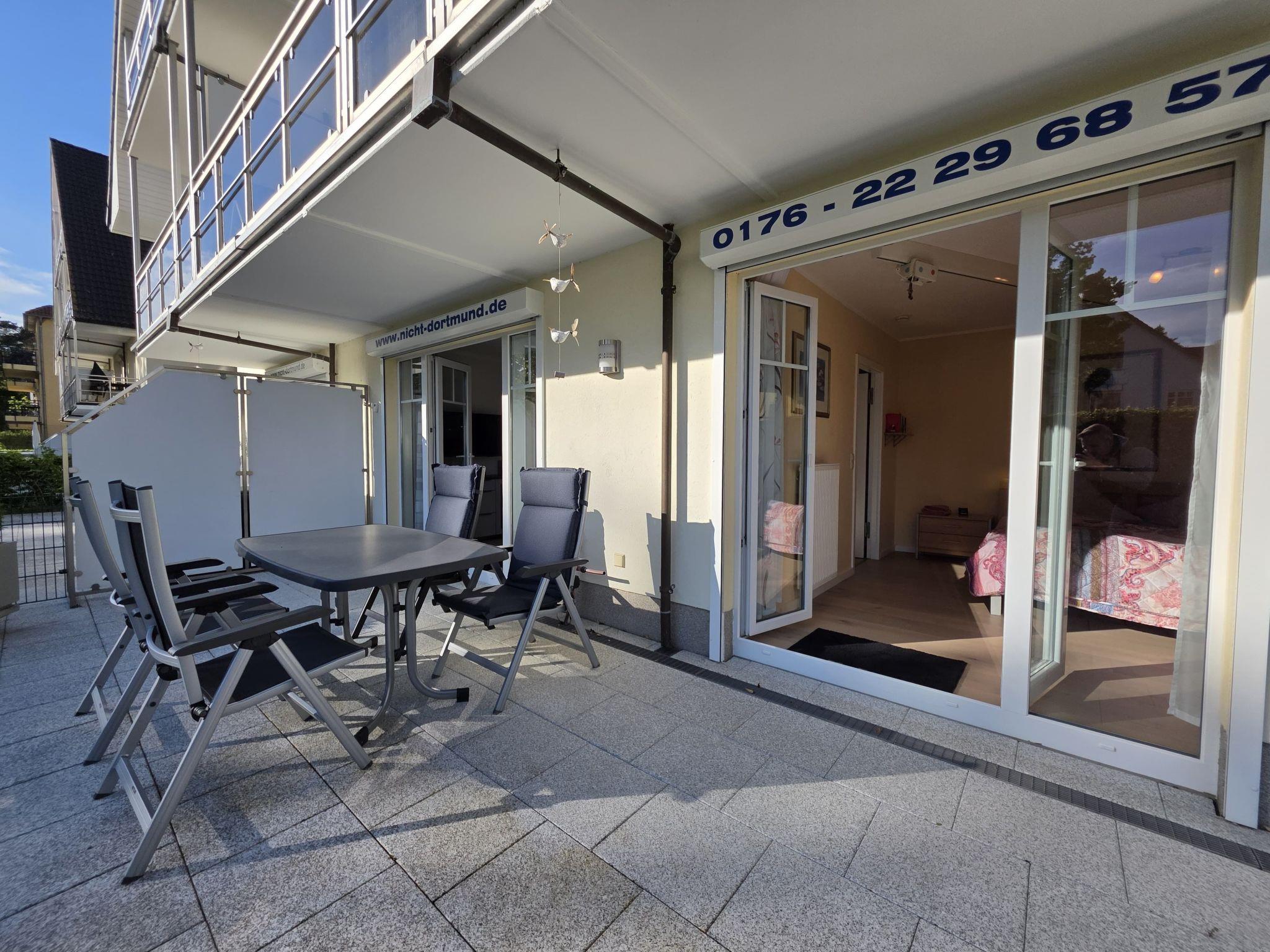 Comfortable, quiet 2-room holiday flat (60 sqm incl. 2 terraces) for 2 people on the ground floor. Underground car park included. Very quiet location directly at the spa gardens. Only 50 metres to the beach! The two terraces belonging to the holiday flat (east and south-west facing) offer you all-day sunshine and the ideal opportunity to relax thanks to their ideal location.