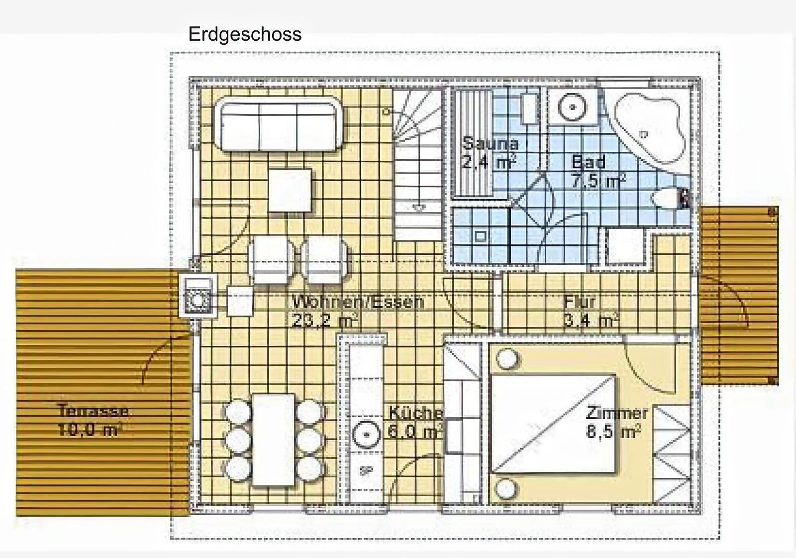 In den Sommermonaten lädt die große Terrasse, mit Blick auf die ansteigende Düne mit hohen Bäumen, zum Entspannen und Erholen ein. Diesen Blick kann man in den Herbst- und Wintermonaten bei wohliger Wärme auch vom Wohn-/Essbereich und von der Galerie aus genießen. Spielt sich das Urlaubsleben in den Sommermonaten vorwiegend im Freien und am Wasser ab, werden Sie die Annehmlichkeiten des Hauses wie Whirlpool, Sauna, Kaminofen und elektrische Fußbodenheizung an kühleren Tagen nach einem langen, erfrischenden Strandspaziergang besonders zu schätzen wissen. Für die Grundwärme sorgt hier eine Elektroheizung. Für Kinder ist der langsam ins Meer abfallende Sandstrand bestens geeignet, so dass sich die Eltern unbesorgt im Strandkorb erholen können. Für Ihre vierbeinigen Freunde gibt es einen Hundestrand.