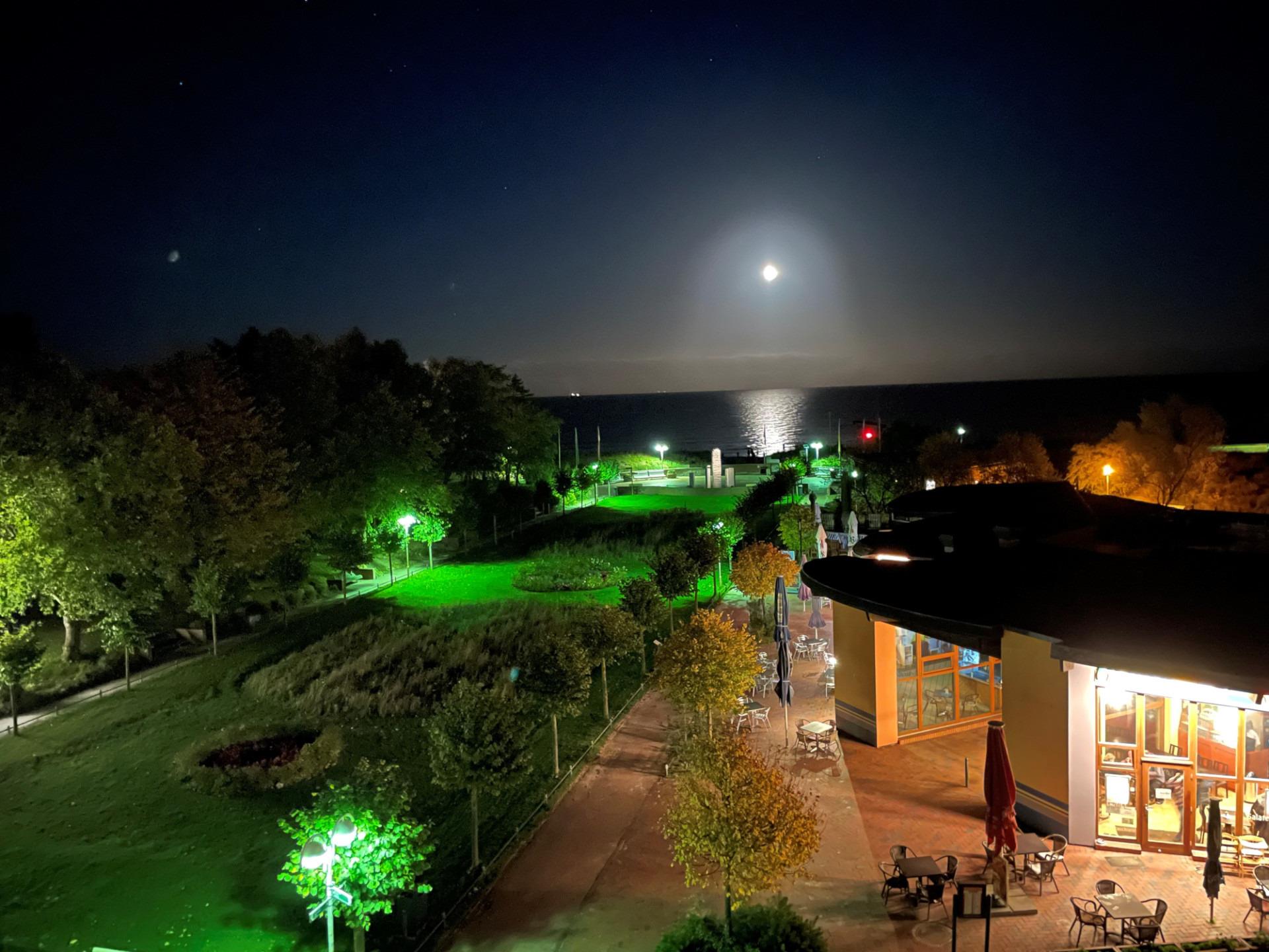 Der Balkon am Wohnzimmer bietet einen idealen Sonnenplatz mit eigenem Strandkorb und einen herrlichen Blick auf die Ostsee. Von dort aus können Sie den Ort direkt am Strand erahnen, an dem vor ca. 100 Jahren zweimal von Sturm und Eismassen die "Alte Seebrücke" weggerissen wurde.