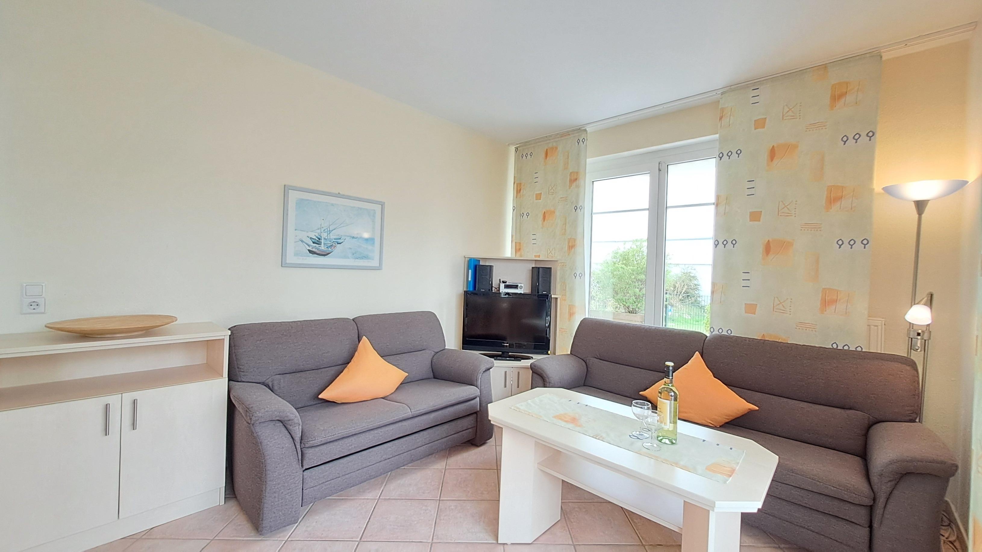 - lichtdurchflutet mit 2 Sofas, TV, Stereoanlage sowie Esstisch