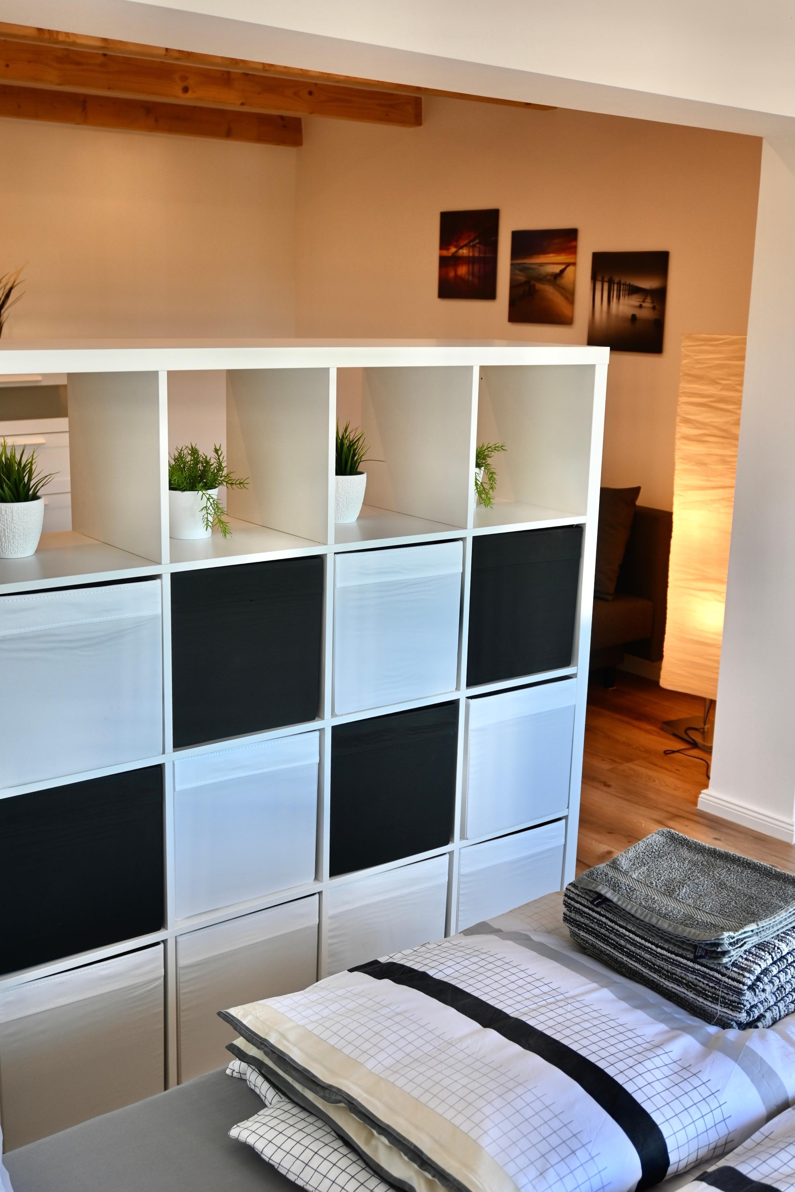 Im Nebenhaus dahinter erwarten sie vier Sparferienwohnungen mit einer Größe von 22qm, Schlafplätze für bis zu 3 Personen und kleiner Terrasse. Hier gilt das Motto: klein aber fein und ist für alle die gedacht, die viel unterwegs sind und fast nur zum Schlafen in die Unterkunft kommen. Eine Sparwohnung, Nr.1 ist mit Einzelbetten und drei, Nr.2, 3 und 4, mit Doppelbett ausgestattet.