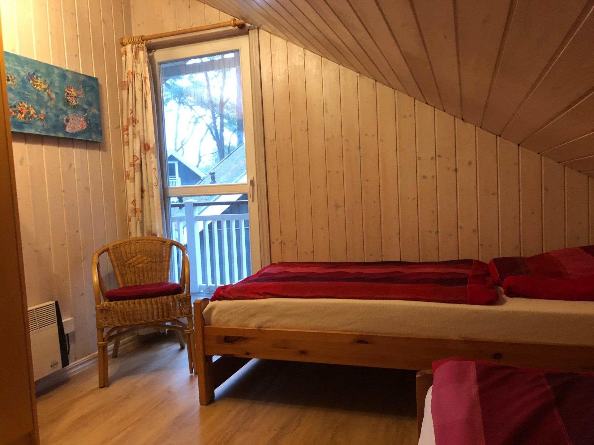 Im Obergeschoss finden Sie zwei weitere Schlafzimmer: ein Schlafzimmer mit Doppelbett und das dritte Schlafzimmer mit zwei Einzelbetten.