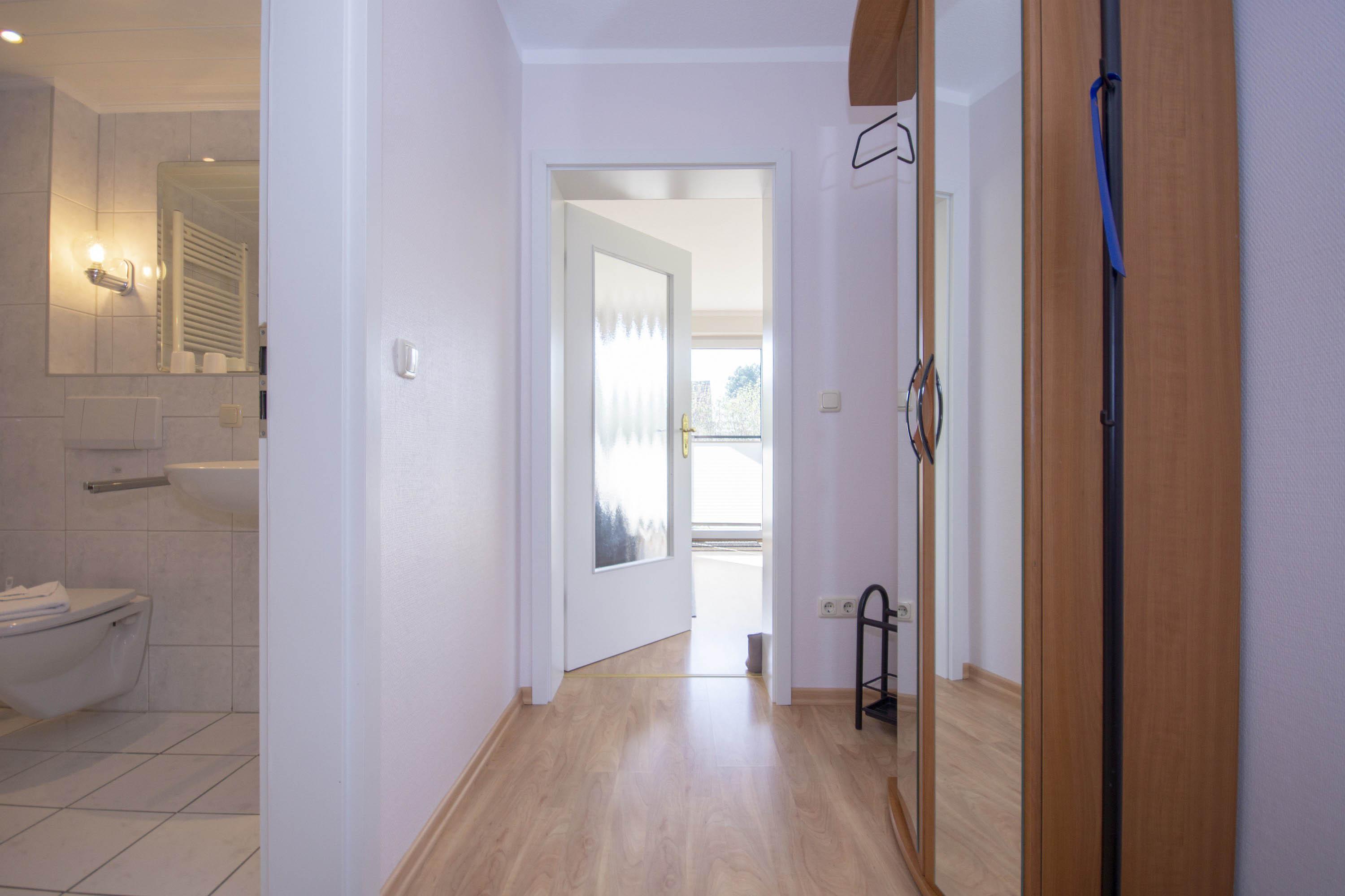 Die Ferienwohnung 2 im Erdgeschoss im Haus Rügensonne verfügt über einen freundlichen Eingangsbereich, eine sonnige Terrasse, einen gemütlichen Wohnbereich und ein separates Schlafzimmer.