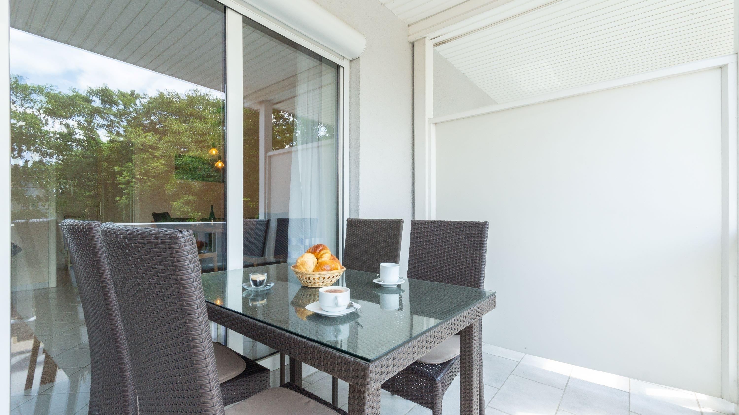 Unser Highlight: In dem Apartment befindet sich eine Infrarotsauna mit geschütztem Blick ins Grüne zur Eigennutzung.