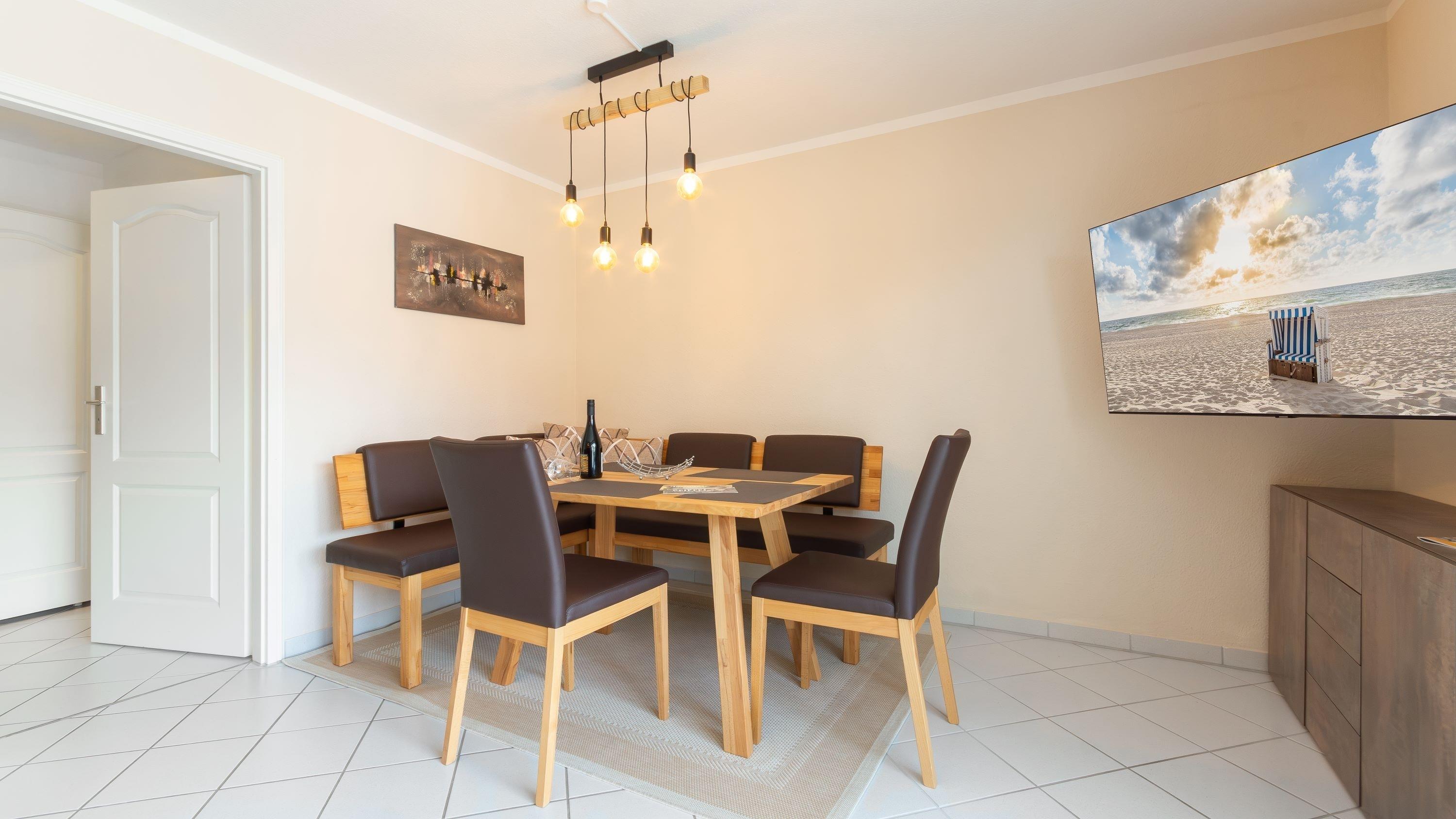 Die Maisonette-Wohnung, mit ihren 52m², bietet Platz für bis zu zwei Personen. Liebevoll eingerichtet, mit moderner Ausstattung, lädt die Ferienwohnung zum Verweilen ein. Vom Wohnbereich mit Esstisch, Sofa und Smart-TV aus gelangt man auf den sonnigen Süd-Balkon, auf dem gemütliche Grillabende bei wunderschönem Sonnenuntergang über dem Selliner See verbracht werden können.