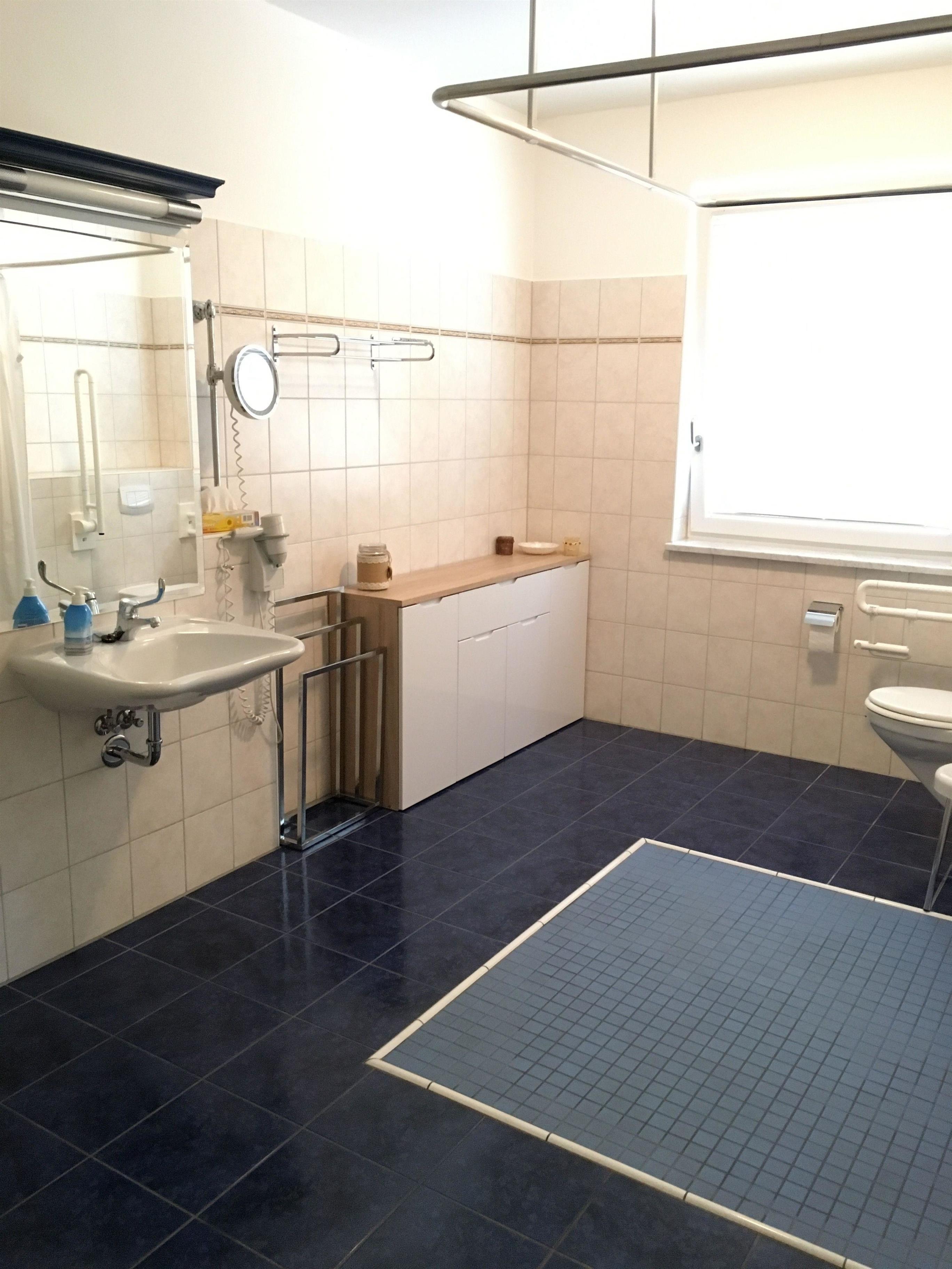 Wir bieten ihnen einen kombinierten Wohn und Schlafraum mit integrierter Küchenzeile. Rollstuhlgerechtes Badezimmer mit ebenerdig befahrbarer Dusche, Duschklappsitz, - Haltegriffe an Dusche sowie WC, Waschbecken unterfahrbar, Spiegel in Sitzposition - Waschmaschine- Kleiderschrank mit Zimmersafe, Garderobe, Koffer- und Schuhständer. Die Küche ist mit einem Kühlschrank, Kochfeld, Backofen, Geschirrspüler, Toaster, Wasserkocher, Kaffeemaschine sowie einer Mikrowelle ausgestattet.Küchenutensilien sowie vom Teller bis zum Löffel ist alles vorhanden.(Herd und Waschbecken sind unterfahrbar). LCD-Flachbildfernseher mit Satellitenreceiver.