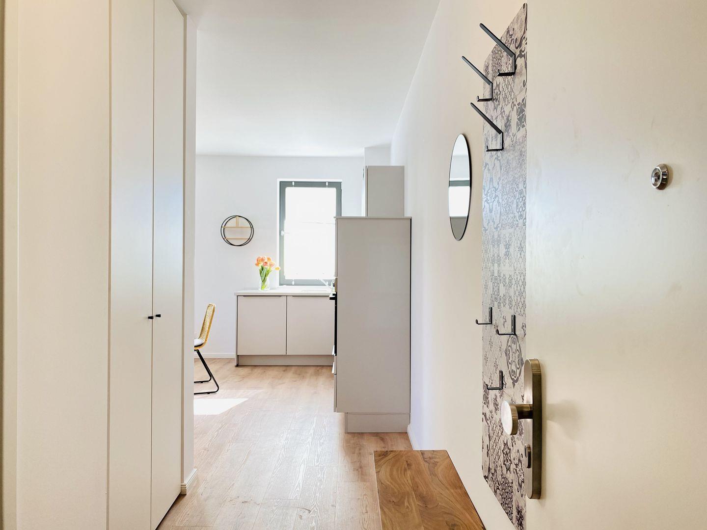 Ein Schlafzimmer mit bequemen Boxspringbett und Deckenventilator und ein Badezimmer mit ebenerdiger Regendusche und Waschmaschine ergänzen das richtige Urlaubsambiente. Ein PKW-Stellplatz in der hauseigenen Tiefgarage und kostenfreies WLAN stehen Ihnen während des Urlaubs zur Verfügung.