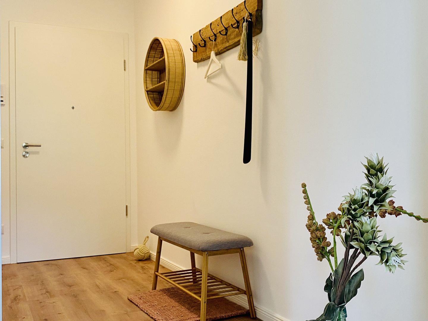 Moderne Möblierung im skandinavischen Stil erwartet Sie in der Ferienwohnung Strandkorb & Mee(h)r im 1. Obergeschoss der Villa Candela in Baabe. Die 53 m² große Ferienwohnung ist für 1-4 Personen geeignet. In allen Räumen lassen sich hübsche Details entdecken, die den Urlaub hier zu einem traumhaften Erlebnis werden lassen. Genießen Sie ruhige Stunden im gemütlichen Strandkorb auf dem Balkon oder im Wohnbereich mit großer Couch, Smart-TV, Esstisch und bequemen Stühlen.