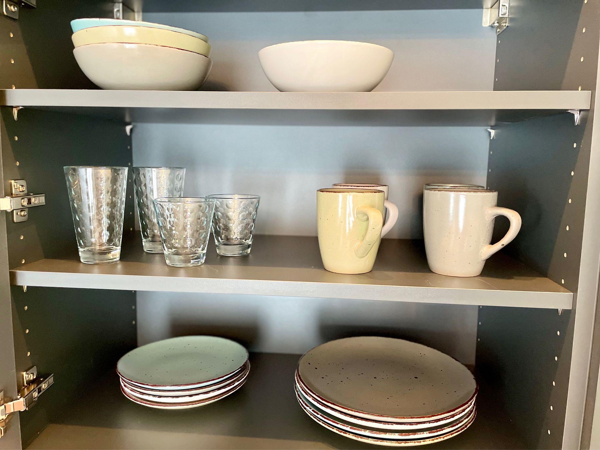 in der Sie alles finden was sie zum Kochen brauchen, inkl. Induktionsplatte, Mikrowelle und Kühlschrank.