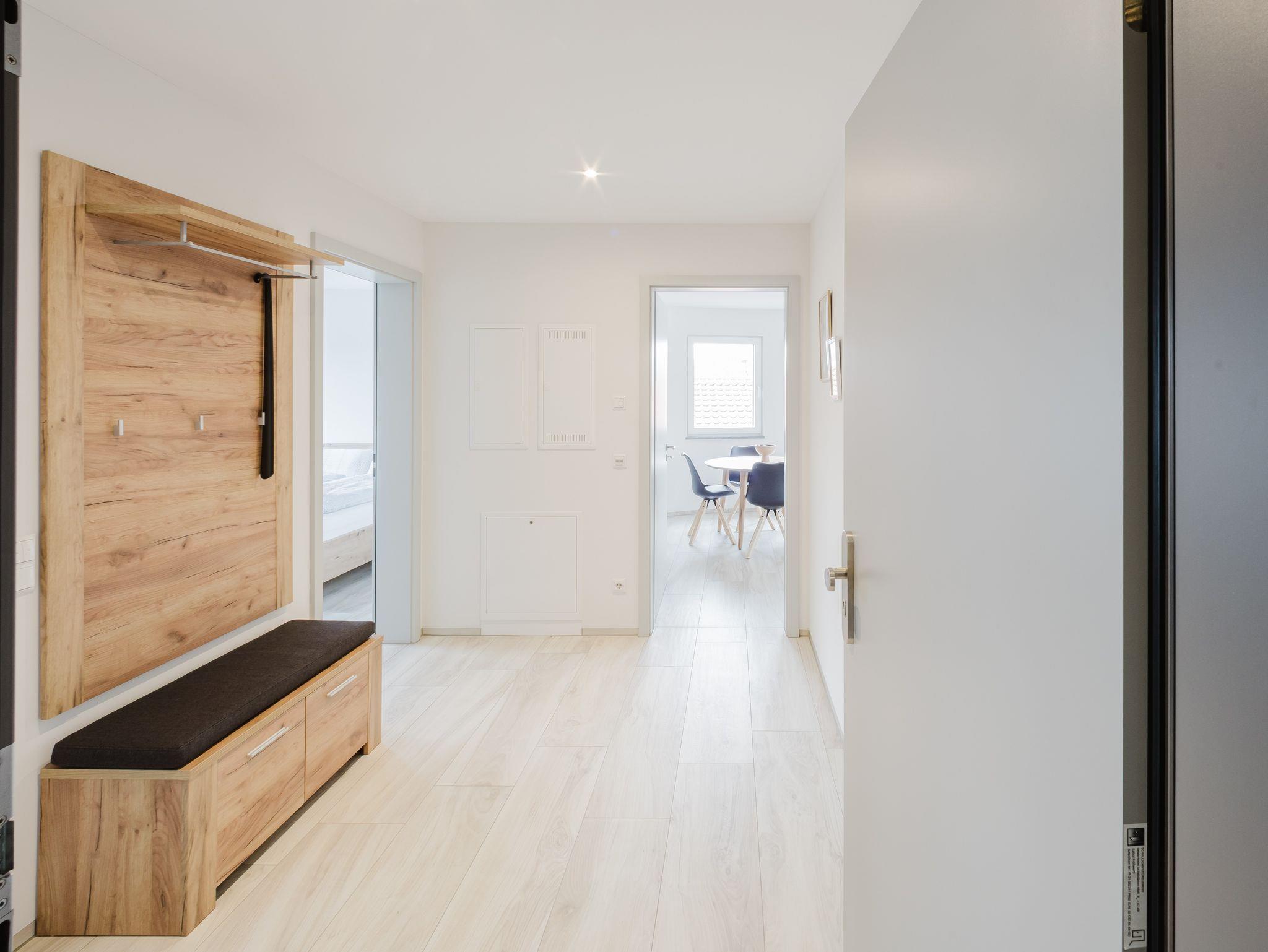 Die gemütliche, helle Ferienwohnung wurde erst im Jahr 2024 erbaut. Sie verfügt über einen schönen Wohn-/Essbereich, ein modernes Bad mit Regenbrause und begehbarer Dusche, sowie eine vollausgestattete Küche mit gemütlicher Sitzecke.
