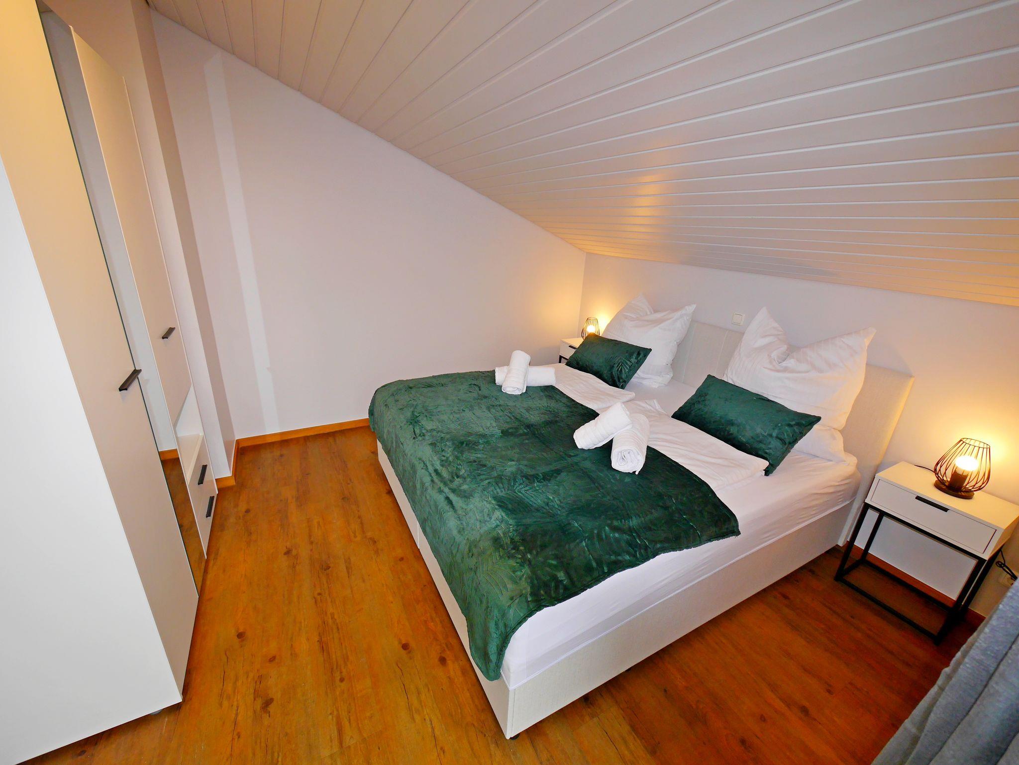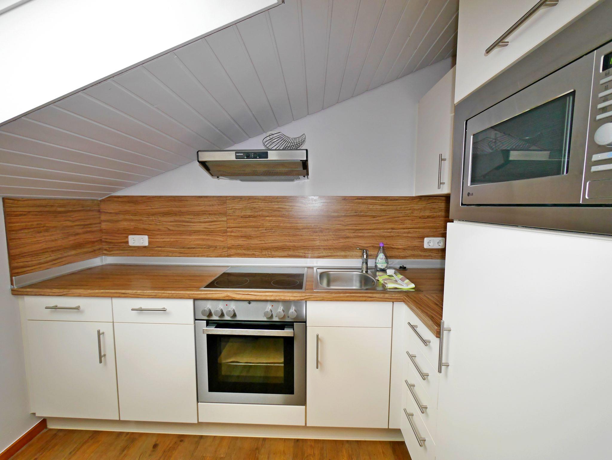 Diese vollständig möblierte 2-Zimmer-Ferienwohnung im Dachgeschoss bietet Platz für bis zu vier Gäste und verfügt über zwei getrennte Schlafbereiche. Sie liegt im Obergeschoss einer kleinen, ruhigen Anlage mit nur sechs Apartments.