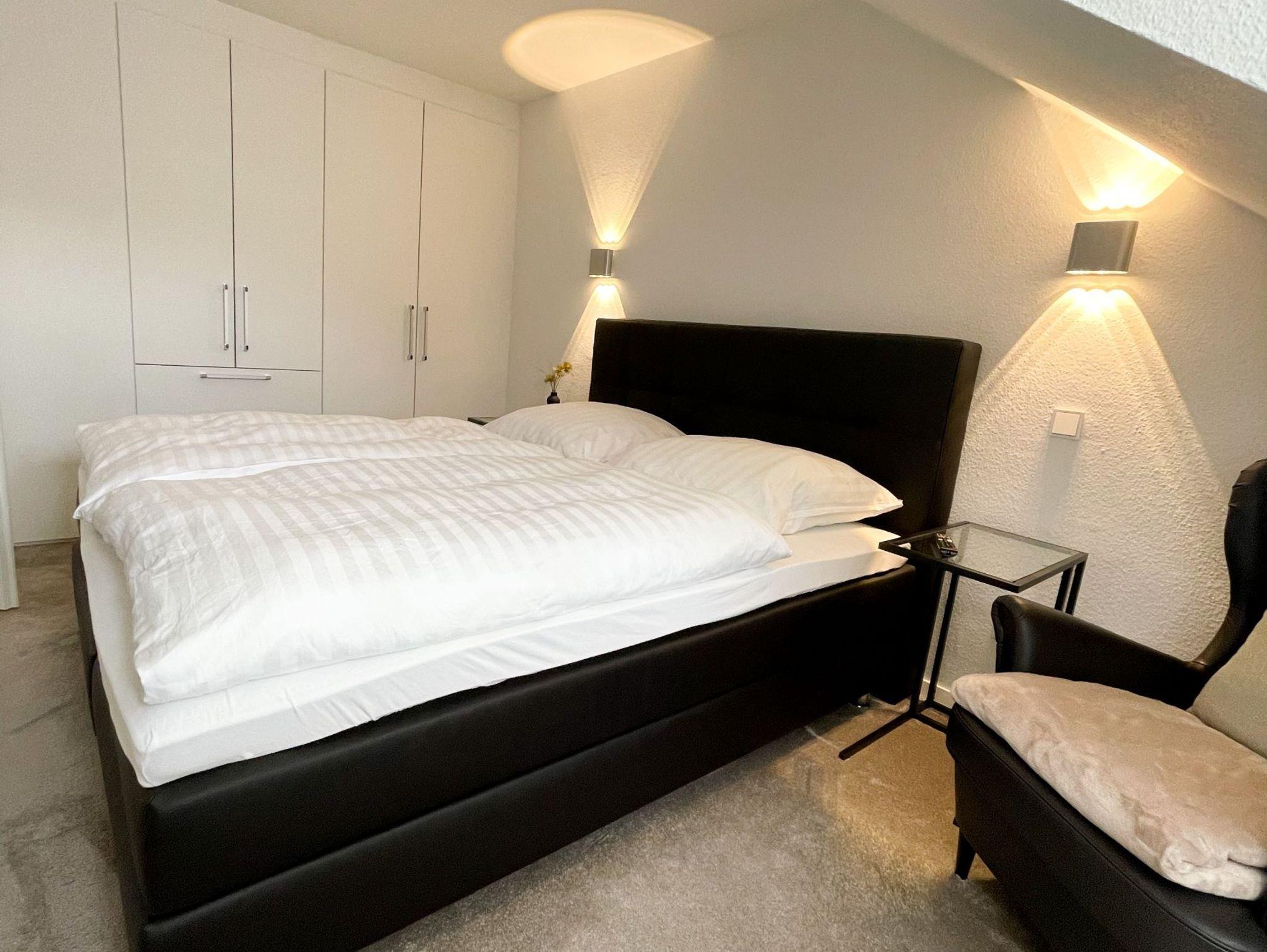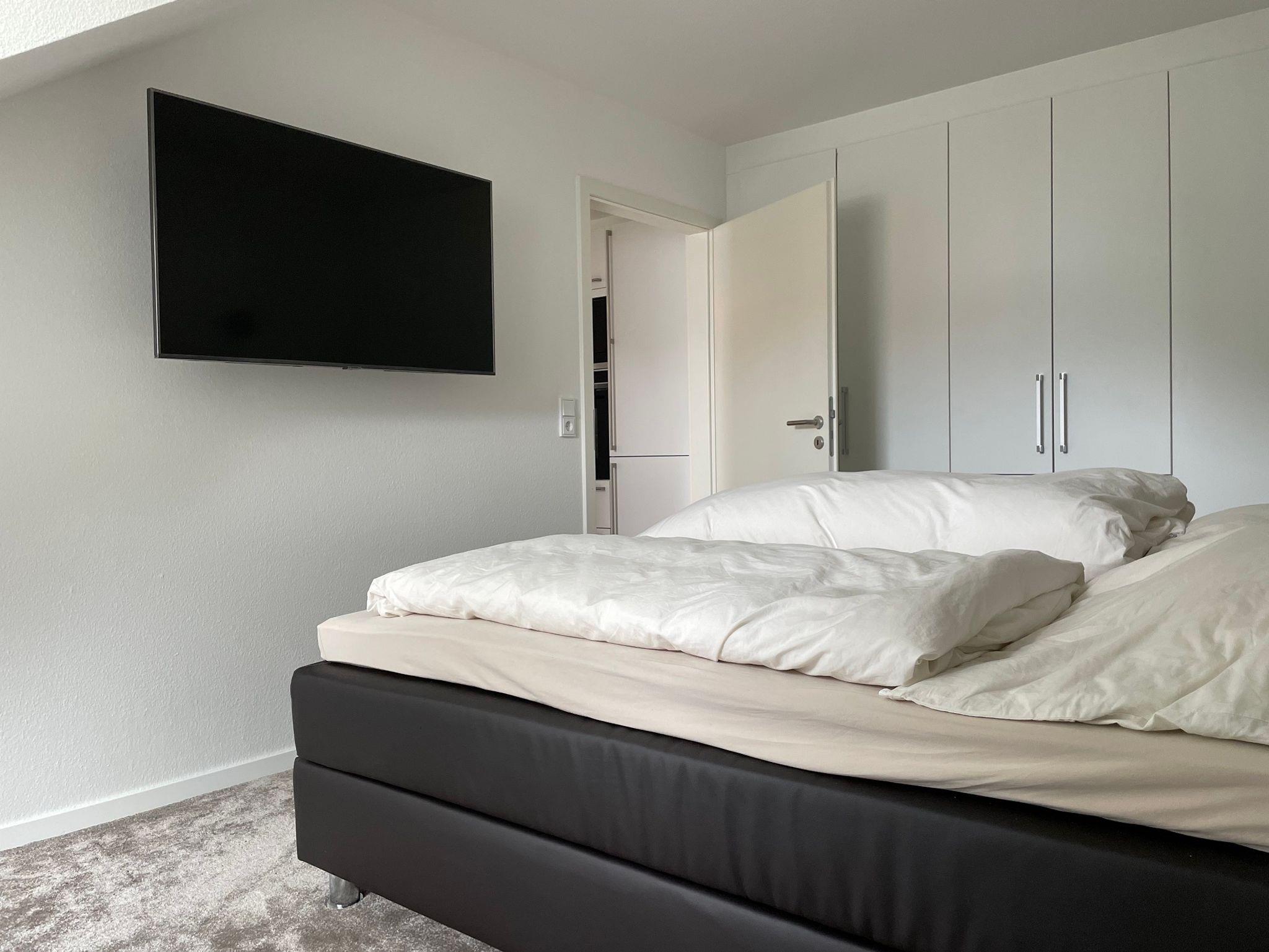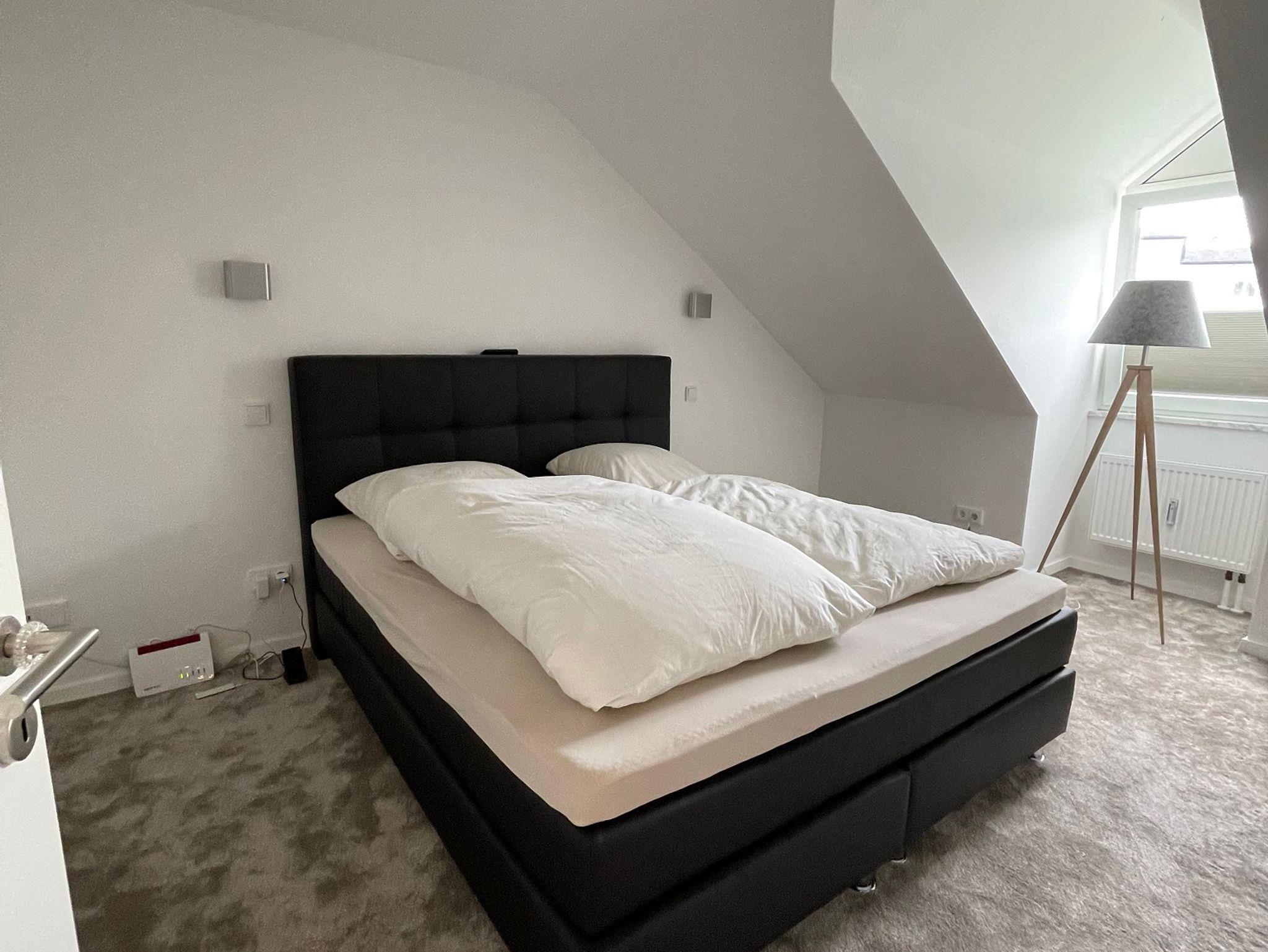 Ein gemütliches Schlafzimmer mit hervorragendem Boxspringbett (180cm x 200cm) bietet die optimale Grundlage für guten Schlaf.
