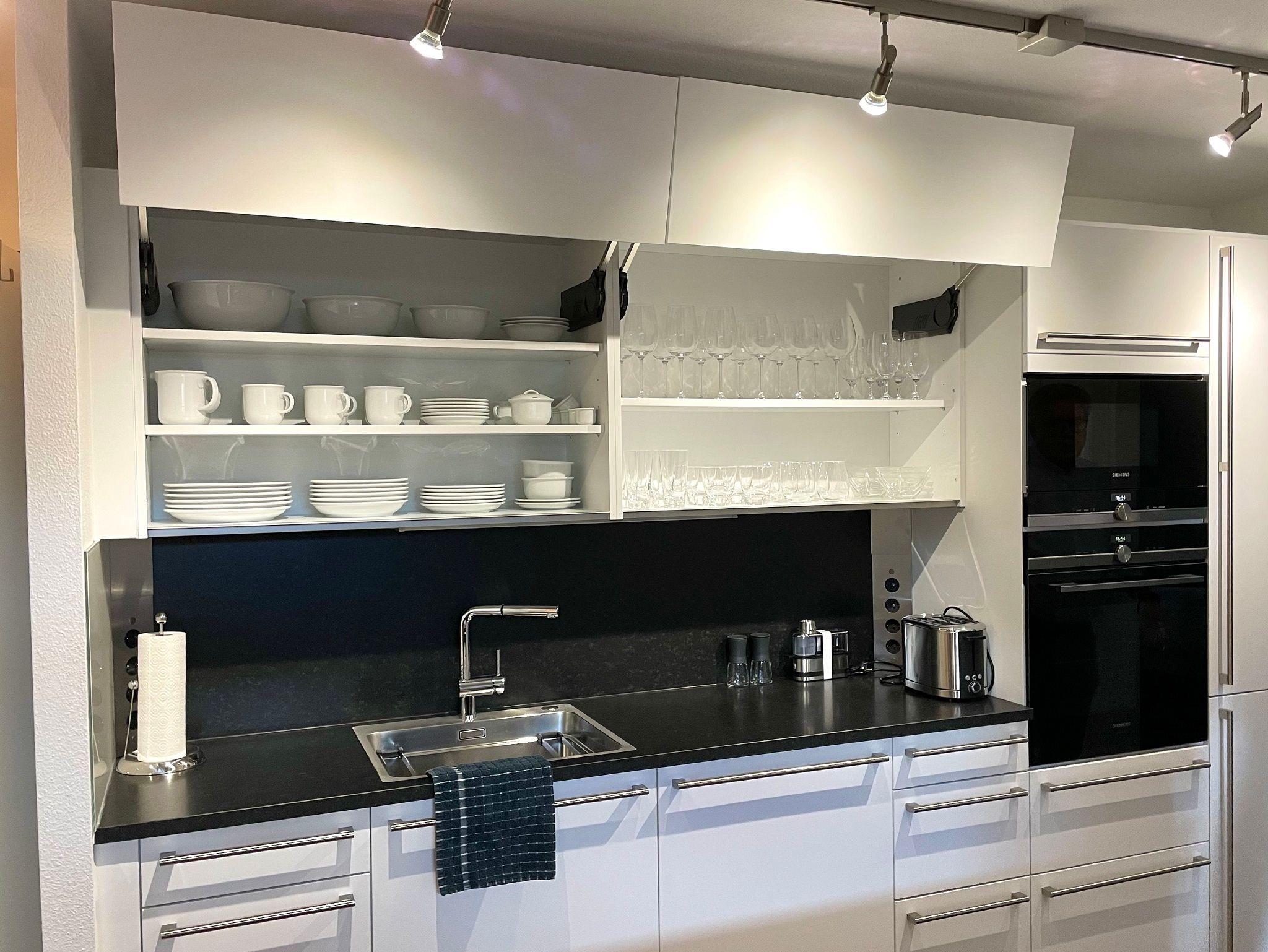 Die neue Küche wurde fachmännisch vom Küchenbauer geplant, maßgefertigt eingebaut und lässt keine Wünsche offen. Die ebenfalls maßgefertigten Einbauschränke in Schlafzimmer und Eingangsbereich sorgen für viel Stauraum und Ordnung.