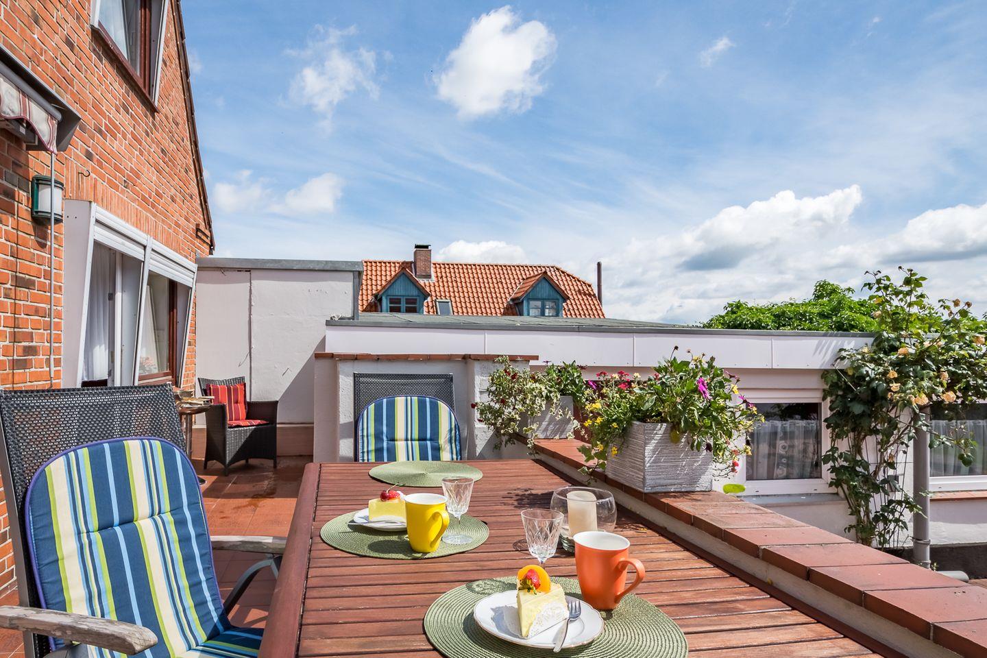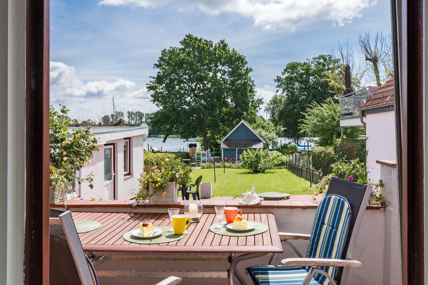 Die sonnige Terrasse und der Garten garantieren Erholung pur. Hier können Sie entspannt in der Sonne liegen und den direkten Blick auf die Schlei genießen. Am Ende des Grundstücks befindet sich außerdem ein eigener Bootssteg.
