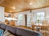Die Ferienwohnung teilt sich auf in einen Wohnraum mit Kaminofen, einen Essplatz am Fenster, Küchenzeile mit Induktionskochfeld, Geschirrspüler (sehr leise Spülvorgänge), Kühl-/ Gefrierkombination, ein Schlafzimmer mit Doppelbett (2x 90x200cm), ein Durchgangszimmer mit einem Einzelbett (80x200cm) und einem Duschbad mit Dusche, WC und Fußbodenheizung.