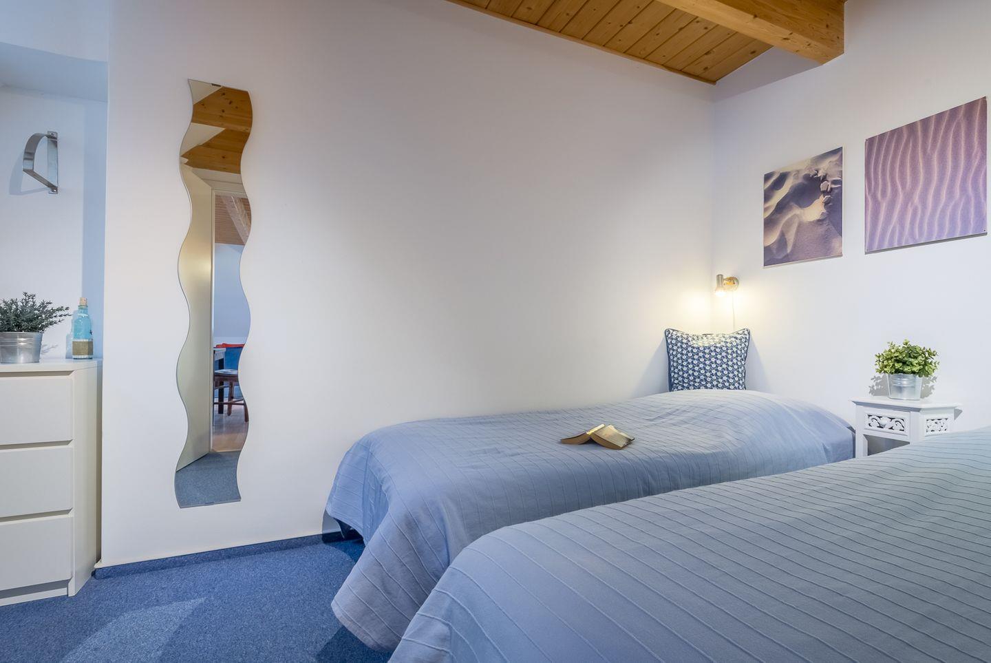 Die Wohnung teilt sich auf in einen großzügigen Wohn-/ Essraum mit offener Küche, französischen Balkon und wunderschönem Blick auf die Schlei/ das Werftgelände, ein Schlafzimmer mit Doppelbett (2x 90x200cm), ein Schlafzimmer mit 2 Einzelbetten, ein geräumiges Badezimmer mit Dusche und ein zusätzliches Gäste-WC.