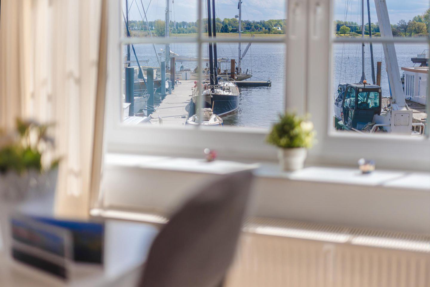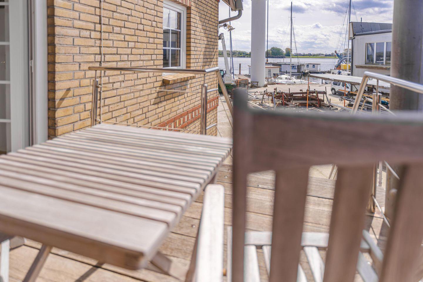 Schöne Wohnung im 1. Stock auf der Werft mit herrlicher Aussicht über die Süd- und Ostseite auf Werft und Schlei.