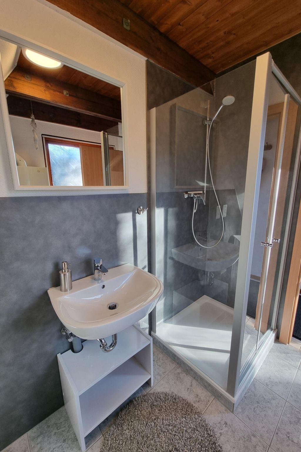 The holiday home is located in a quiet wooded area above Lake Twistesee.