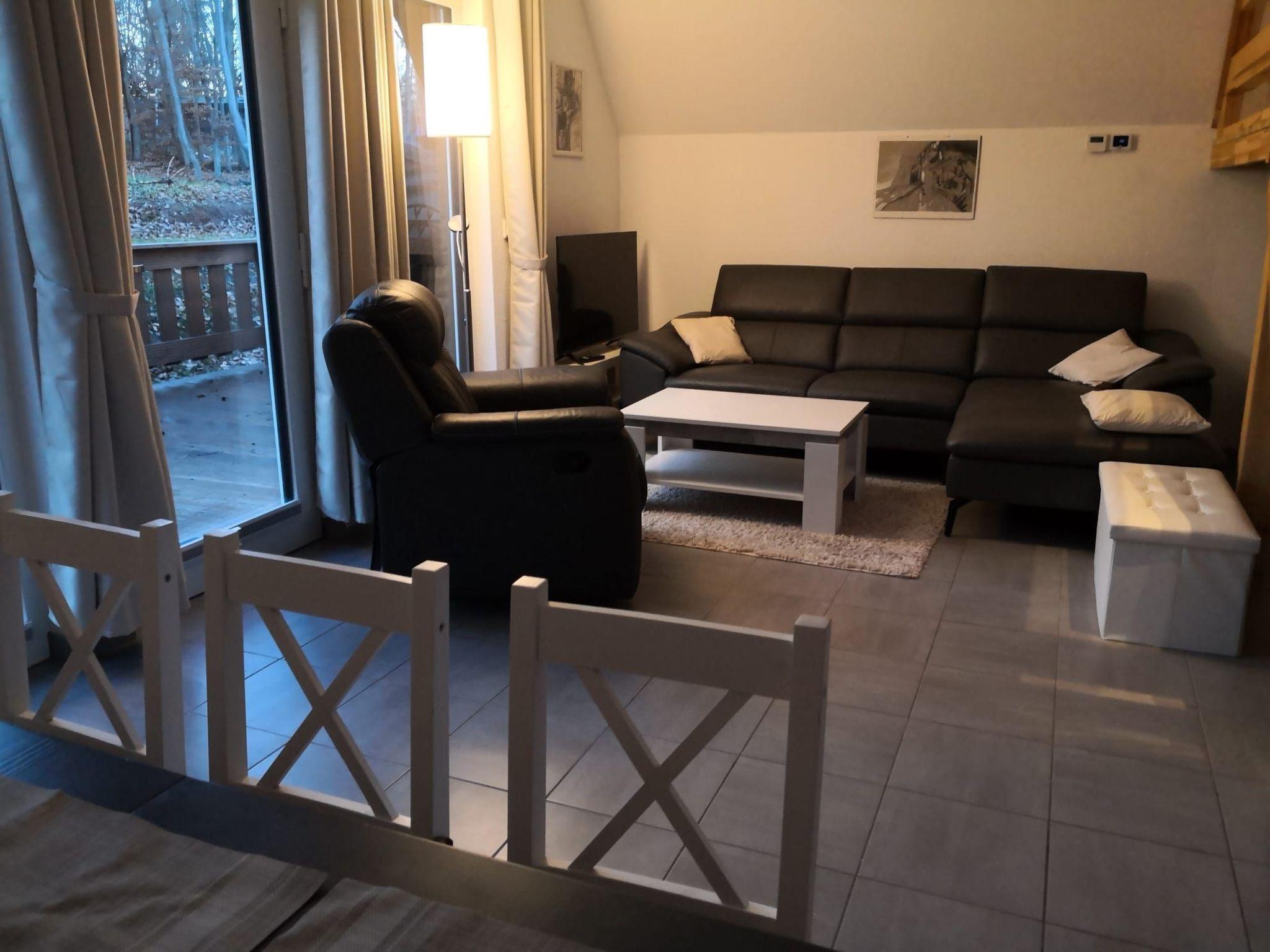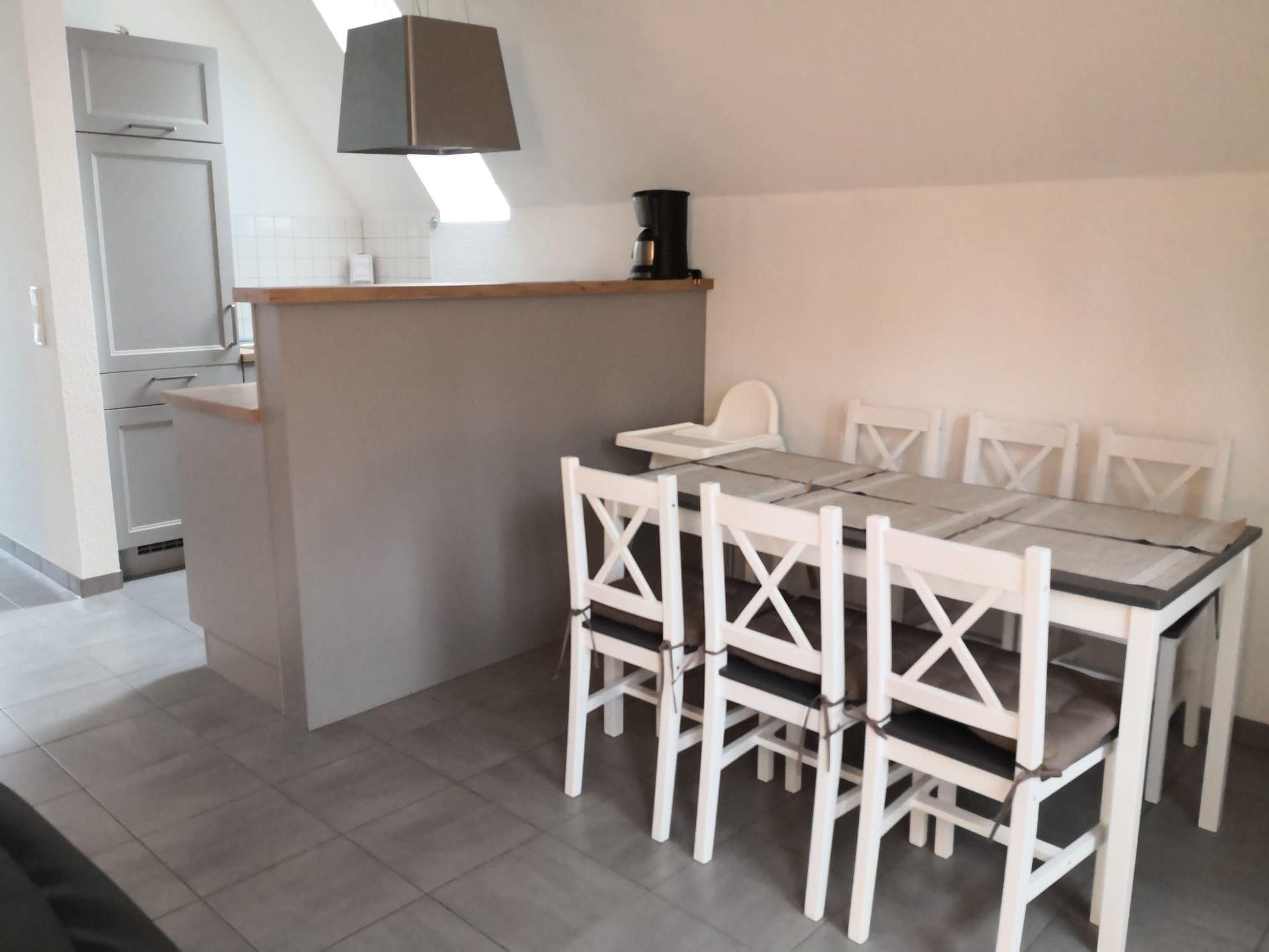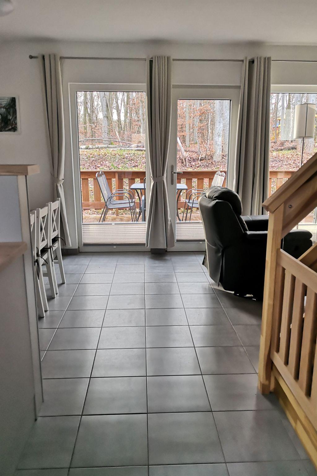 The holiday home can accommodate up to 6 people (maximum occupancy). There are paved paths around the house so that the terrace and the bicycle stand can be reached on dry ground. On the terrace there is a beach chair, a storage box for seat cushions, a weatherproof metal table, six weatherproof metal chairs, a gas barbecue and a lounger. The terrace is secured by an entrance door (small children, dogs). The stairs to the top floor are also secured, and the bedrooms on the top floor are each equipped with two single beds. The kitchen offers many extras: a freezer box, a dishwasher, a fridge with ice box, two coffee machines (including a Senseo with pods), a waffle iron (double), a water bubbler, kitchen scales, a toaster, a microwave, scales, an egg timer, crockery for 12 people, etc. There is a washing machine in the shower room, as well as an iron, ironing board and clothes horse. The sofa and the pull-out TV armchair are made of real leather and are therefore easy to clean. A white box made of imitation leather contains two woollen blankets and games (inside and outside) for adults and children. A smoke detector is available.