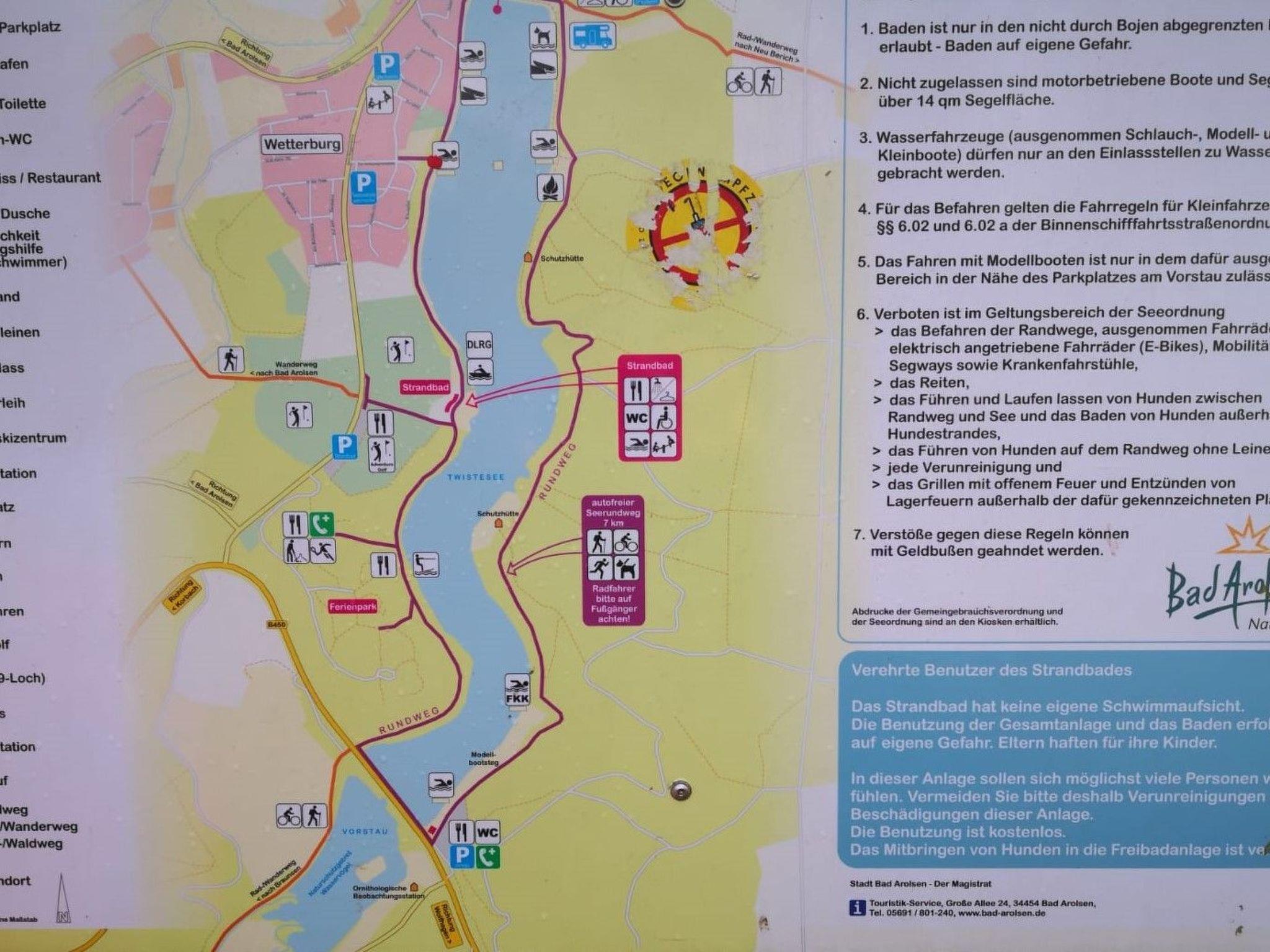 The newly built roof-only holiday home (built in 2022) in the Twistesee holiday park offers many holiday activities: Lake Twistesee with its lido (extensive climbing and play facilities for children, restaurant, sanitary facilities etc), the water ski facility, many designated individual bathing spots, a nudist beach, a dog beach, pedal boat hire and the over 7 km long foot and cycle path are all within walking distance. The holiday park has a mini-golf course, a tennis court, a table tennis table, a badminton and volleyball court and a well-equipped playground. There is also a chess board with pieces. Wetterburg (1 km) and Bad Arolsen (3 km) offer historical buildings (Wetterburg, (Arolsen:) baroque castle, baroque townscape, a baroque town church and a neo-Gothic Catholic church, many museums, ongoing art exhibitions and concerts (castle, riding arena) as well as numerous restaurants, many supermarkets and attractive shops. Kassel and Paderborn can be reached in 45 minutes by car.