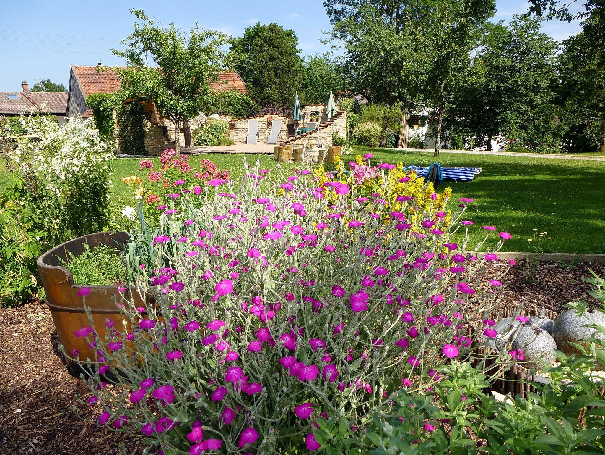 Unser großer Garten mit Liegewiese, Grillplatz und mediterraner Sonnenterrasse lädt ein zum Verweilen und Entspannen. Als kostenlose Zusatzleistung erhalten Sie bei Übernachtung in unserem Haus Ihre persönliche KönigsCard.