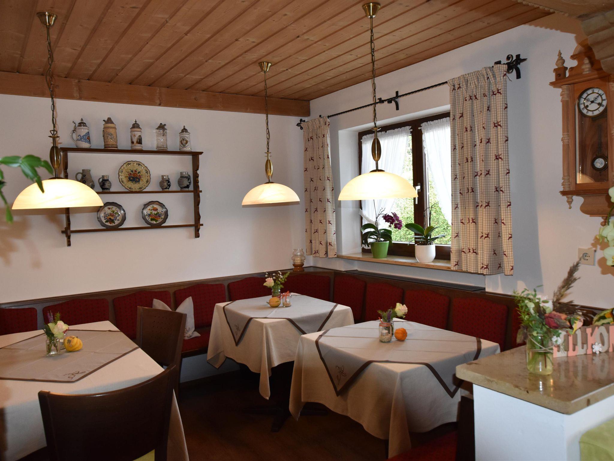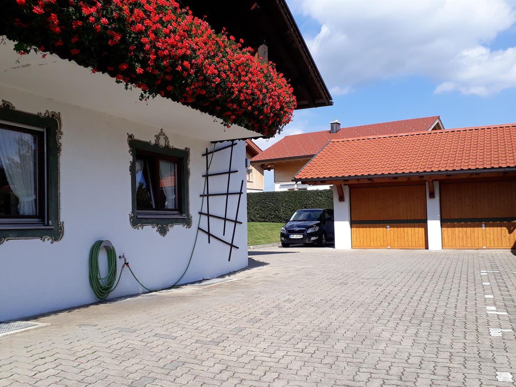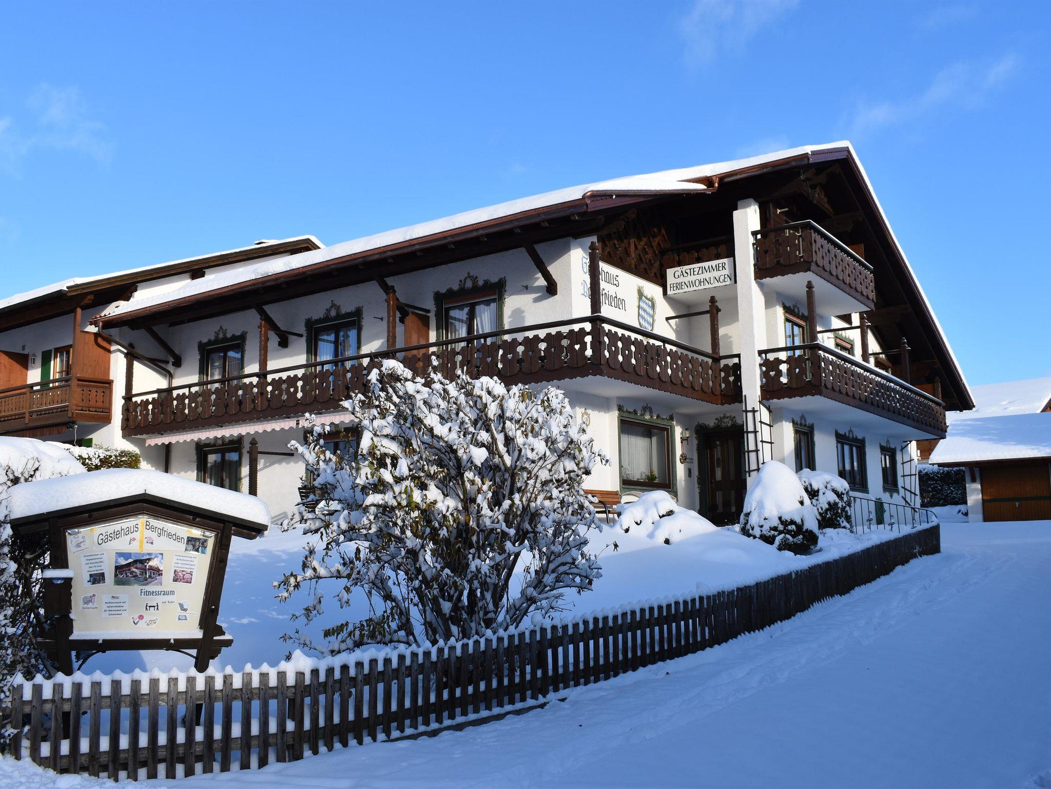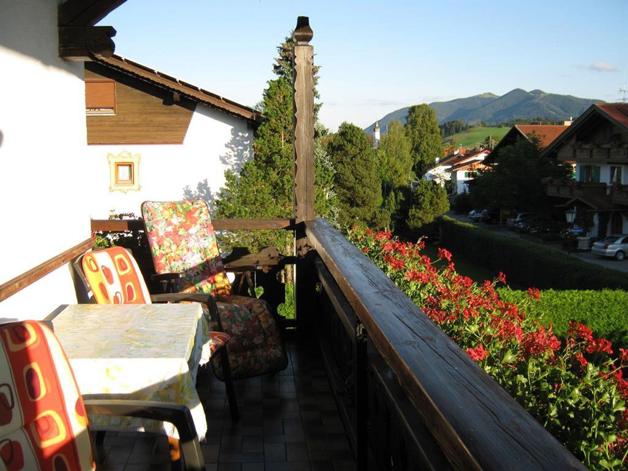 Die Ferienwohnung ist gemütlich und rustikal eingerichtet. Von hier aus haben Sie einen herrlichen Blick in die Ammergauer Berge. Die große Sonnenterrasse und das Gartenhaus mit Freisitz und Liegewiese können jederzeit genützt werden. Ihnen stehen alle Annehmlichkeiten des Hauses wie z.B. Fitnessraum, Solarium, Infrarotkabine, Infomappen und vieles mehr zur Verfügung. Von unseren Stammgästen wird das Getränkeangebot im Haus sehr geschätzt. Gesellige Stunden im Frühstücksraum verschönern Ihren Urlaub.