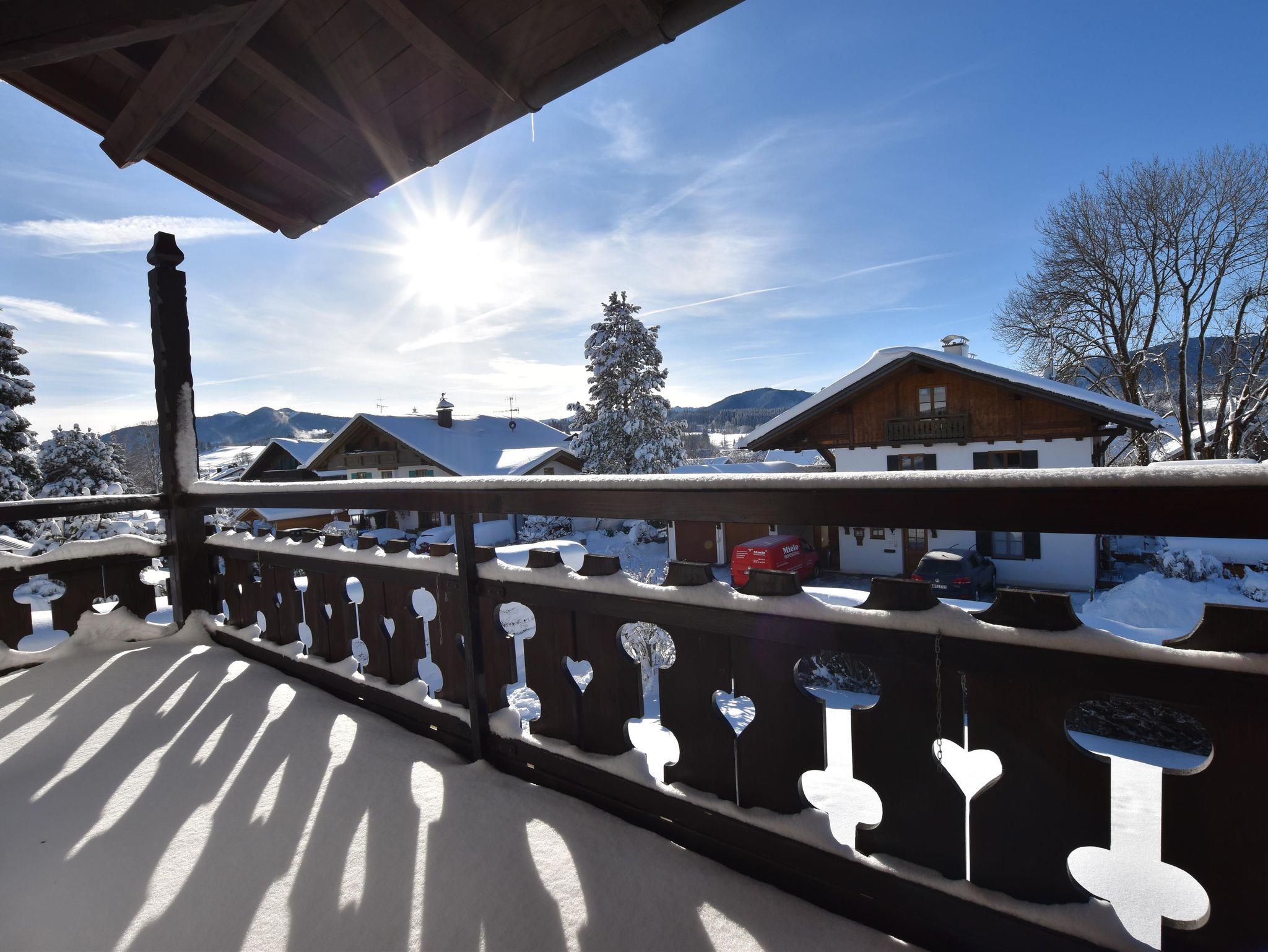 Die Ferienwohnung ist gemütlich und rustikal eingerichtet. Von hier aus haben Sie einen herrlichen Panoramablick in die Berge. Ihnen stehen alle Annehmlichkeiten des Hauses wie z.B. Fitnessraum, Solarium, Infrarotkabine, Infomappen und viele mehr zur Verfügung. Von unseren Stammgästen wird das Getränkeangebot im Haus sehr geschätzt. Gesellige Stunden im Frühstücksraum verschönern Ihren Urlaub.