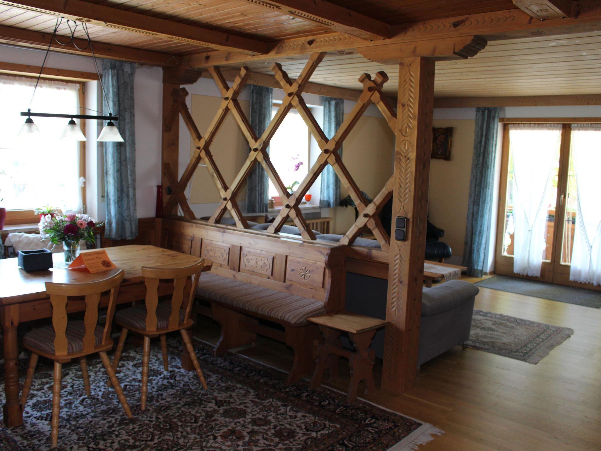 Unsere gemütlich, alpenländlich, eingerichtete Ferienwohnung im 1. Stock mit Blick zum See