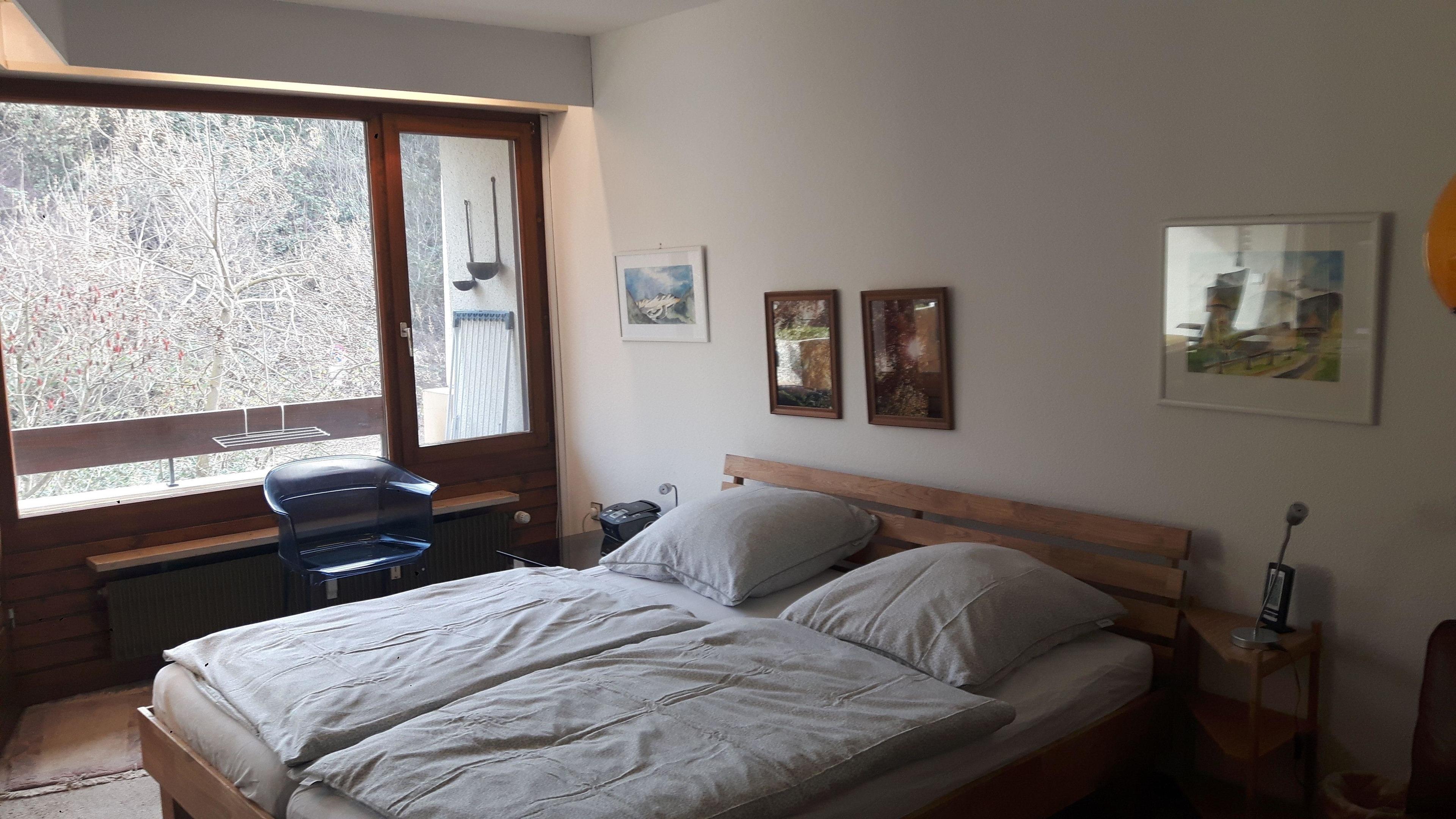 Im geräumigen Kleiderschrank (mit Ganzkörperspiegel) kann das Gepäck verstaut werden. Das Doppelbett mit großen Nachttische sorgt für viel Schlafkomfort.