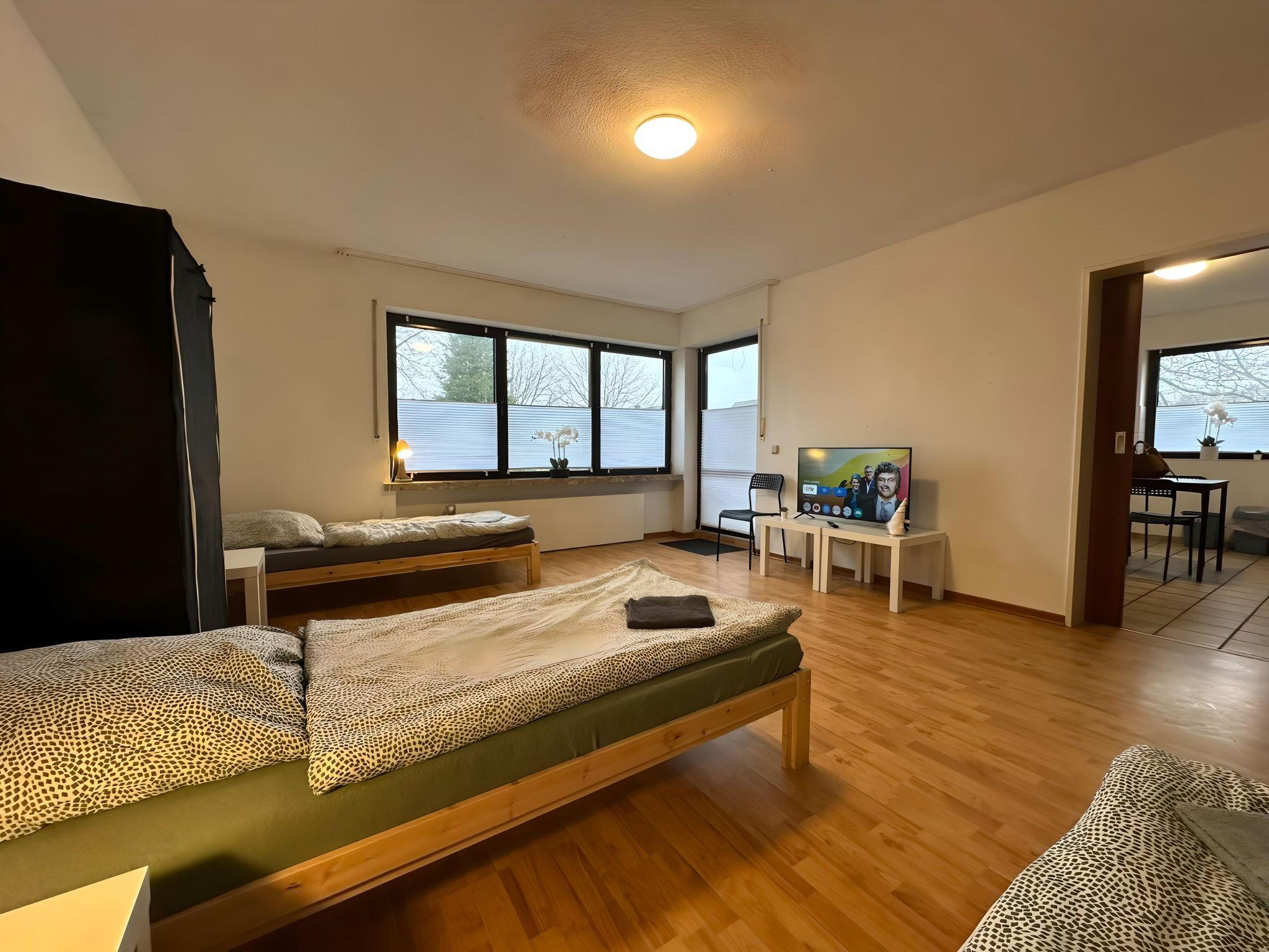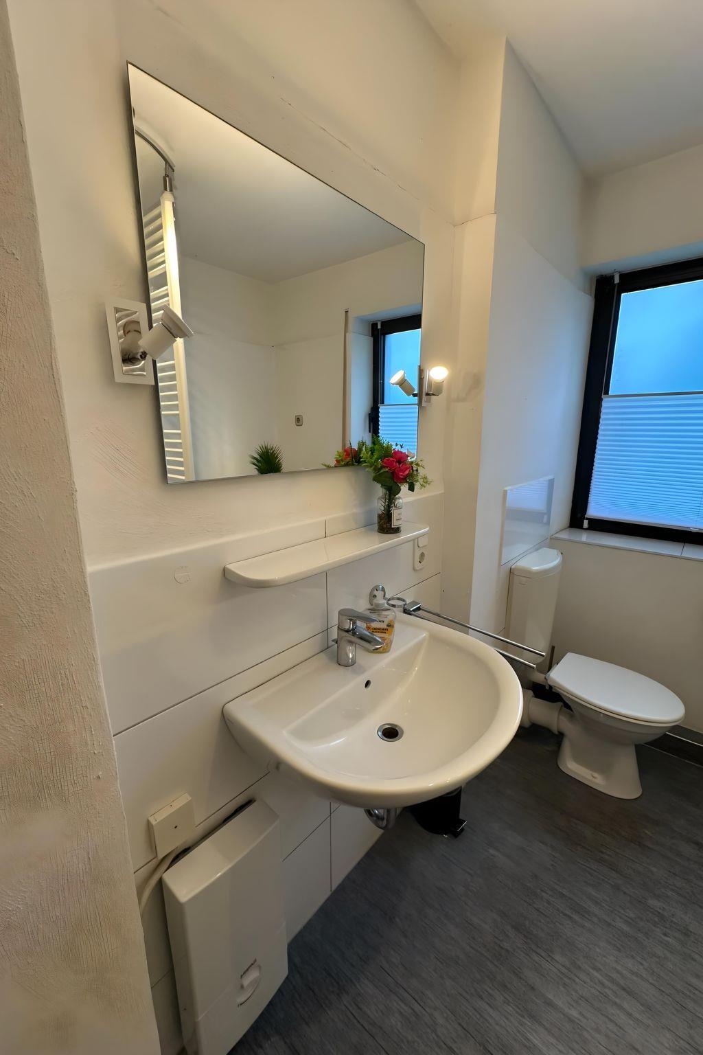 ?? Ruhe[pause] I - close to the centre & pleasantly quiet ??. For 8 guests, large flat with kitchen ??, bathroom & car park ???.