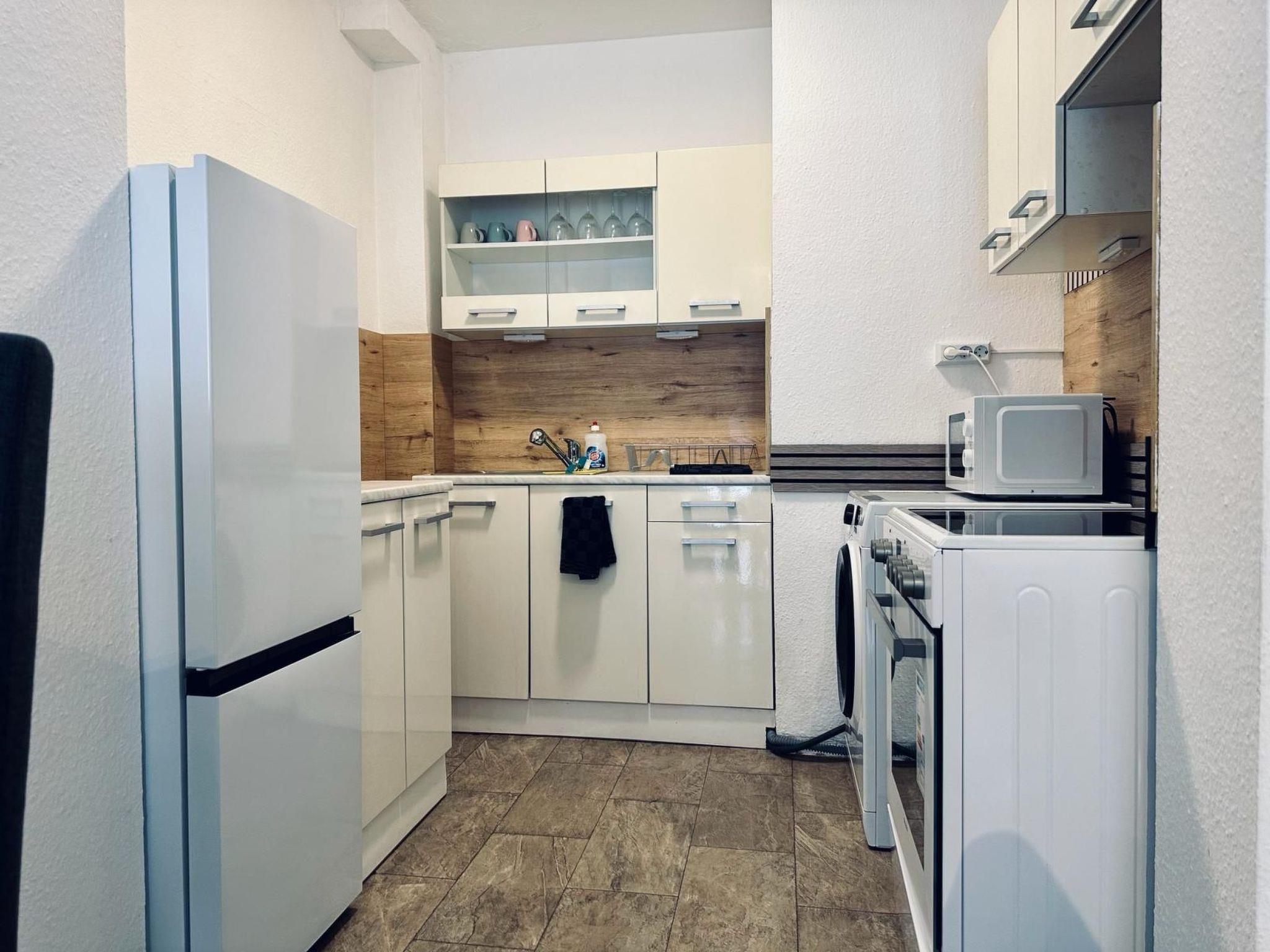 Inside, you will find a modern furnished flat with a bright living-dining area that invites you to linger. A cosy bedroom promises peaceful nights. The kitchen is equipped with everything you need to prepare your meals, including a kettle. There is also a bathroom with a shower and a tumble dryer for your exclusive use in the property for added convenience.