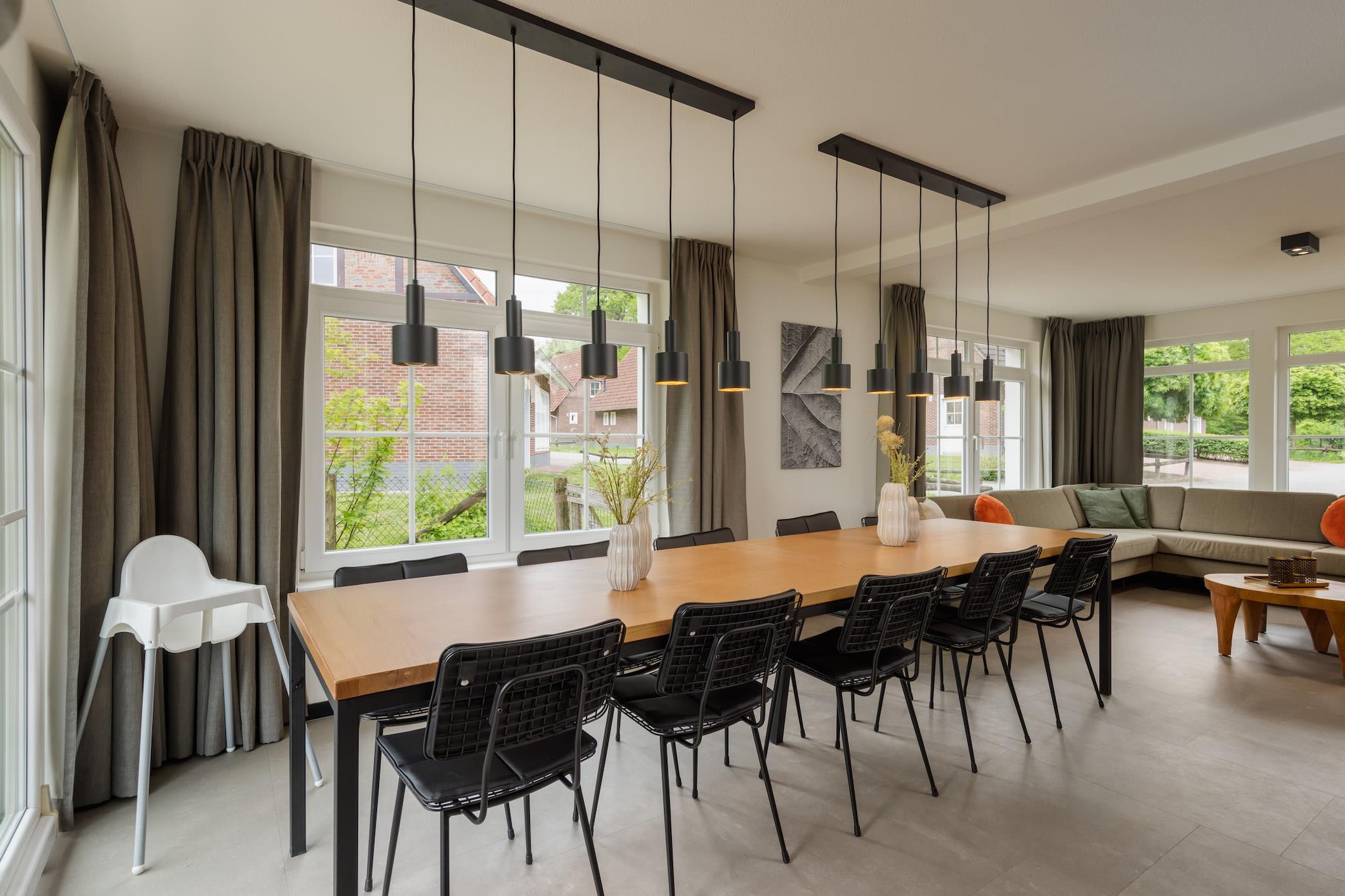 Stueetage: (entre(toilet), Stue(Fjernsyn, varme(gulvvarme)), åbent køkken(elkedel, kaffemaskine(kopper, kaffetragt), combi-mikroovn, opvaskemaskine , køle-fryseskab), Soveværelse med badeværelse(dobbeltseng eller 2 enkeltsenge Senge, Fjernsyn, bruser(Walk-in-bruser), håndvask), Soveværelse med badeværelse(dobbeltseng eller 2 enkeltsenge Senge, Fjernsyn, bruser, håndvask), pulterkammer(tørretumbler, vaskemaskine)) På 1. etage: (soveværelse(dobbeltseng eller 2 enkeltsenge Senge, Fjernsyn), soveværelse(dobbeltseng eller 2 enkeltsenge Senge, Fjernsyn), soveværelse(dobbeltseng eller 2 enkeltsenge Senge), soveværelse(dobbeltseng eller 2 enkeltsenge Senge, Fjernsyn), badeværelse(badekar, bruser(Walk-in-bruser), håndvask, toilet, varme(gulvvarme)), badeværelse(bruser, håndvask, toilet), Repos(toilet)) havedøre, terrasse, have, havemøbler, parkering, liggestole