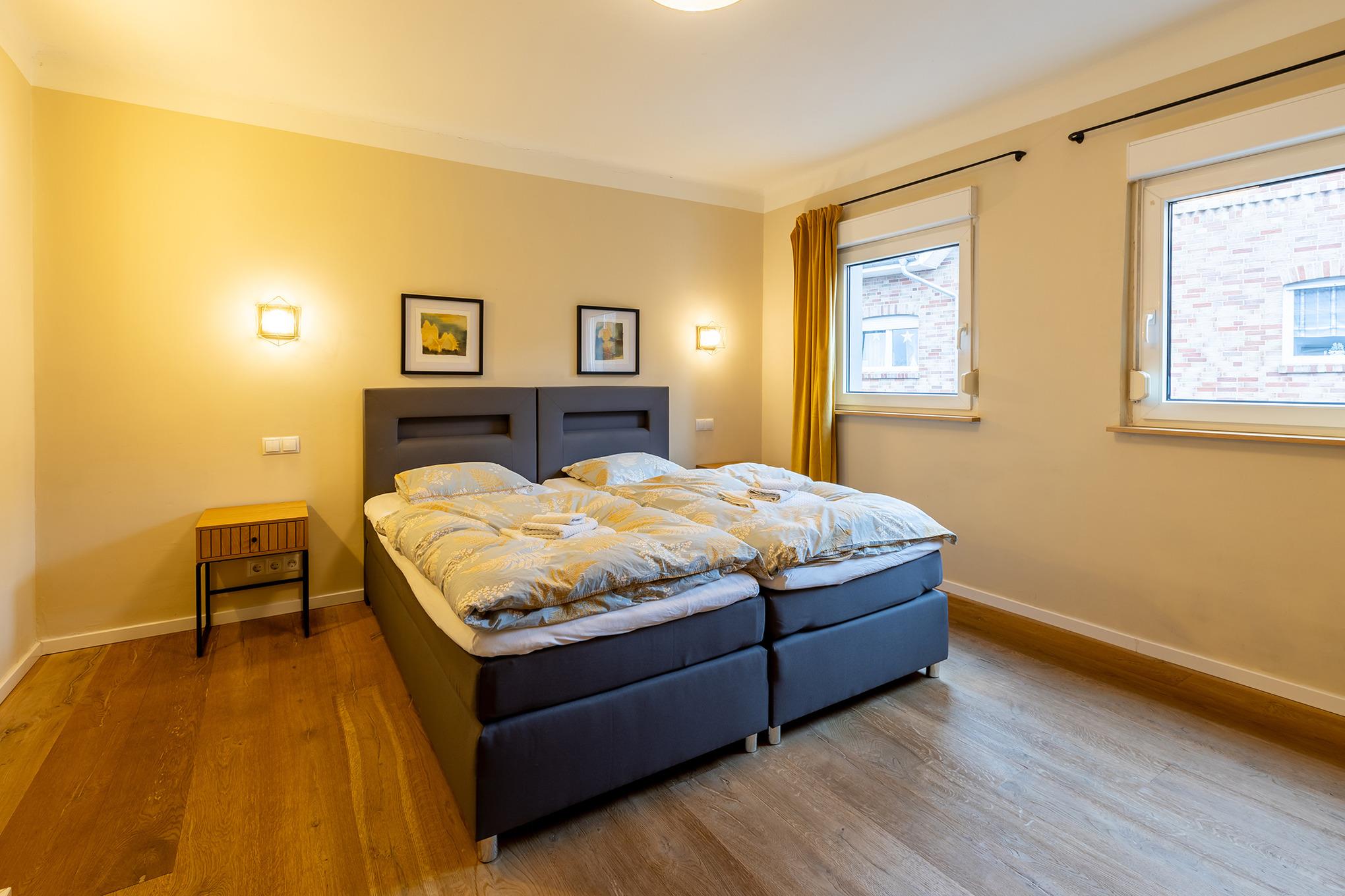 Schlafen: 2 gemütliche Schlafzimmer (mit Kingsize-Betten 180x200cm), sowie ein geräumiger Kleiderschrank mit schnellem Zugang zum Badezimmer.