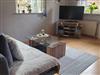 • ein Wohnzimmer mit Schlafcouch und Sat-TV.