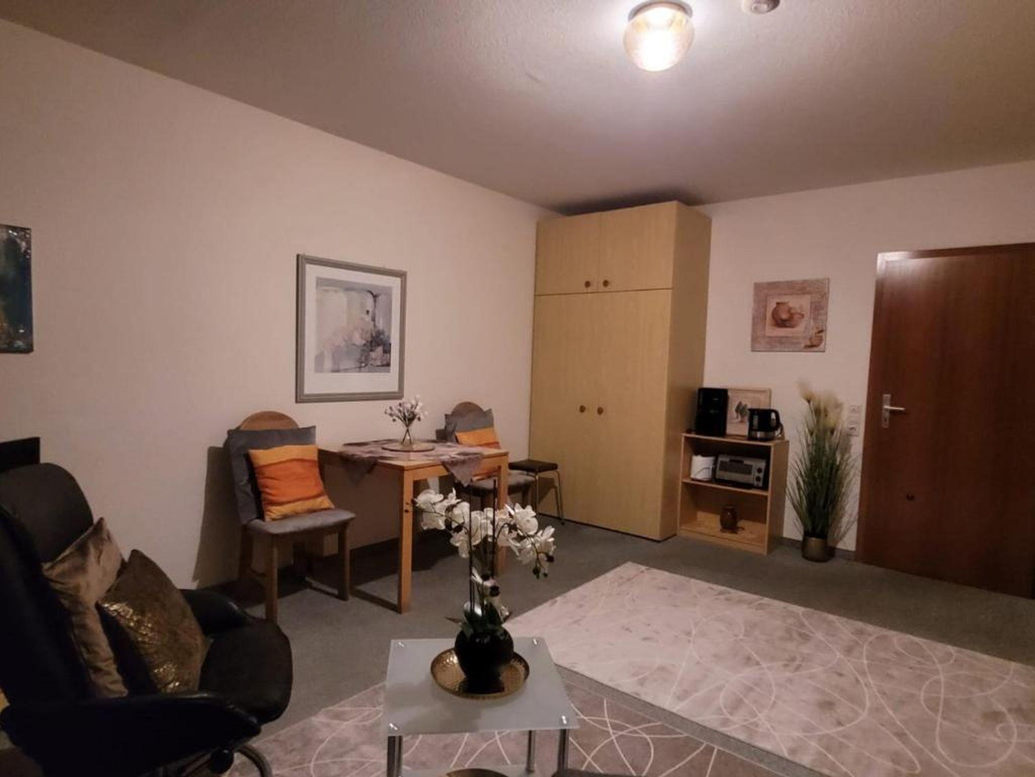 Sie wohnen in einer komplett ausgestatteten Einzimmer-Wohnung mit 35qm mit Balkon und einem wunderschönen Ausblick auf Bad Bergzabern und den Pfälzerwald. Diese kann mit 1-2 Personen belegt werden, das geräumige Wohnzimmer beherbergt ein zwei Einzelbetten die praktisch eingeklappt werden können, Kleiderschrank und Sitzgelegenheiten mit einer kleinen Küchenzeile komplett ausgestattet, Bad/WC, Sat-TV, sowie Außenbestuhlung auf dem Balkon. Parkplätze sind direkt vorm Haus nutzbar.