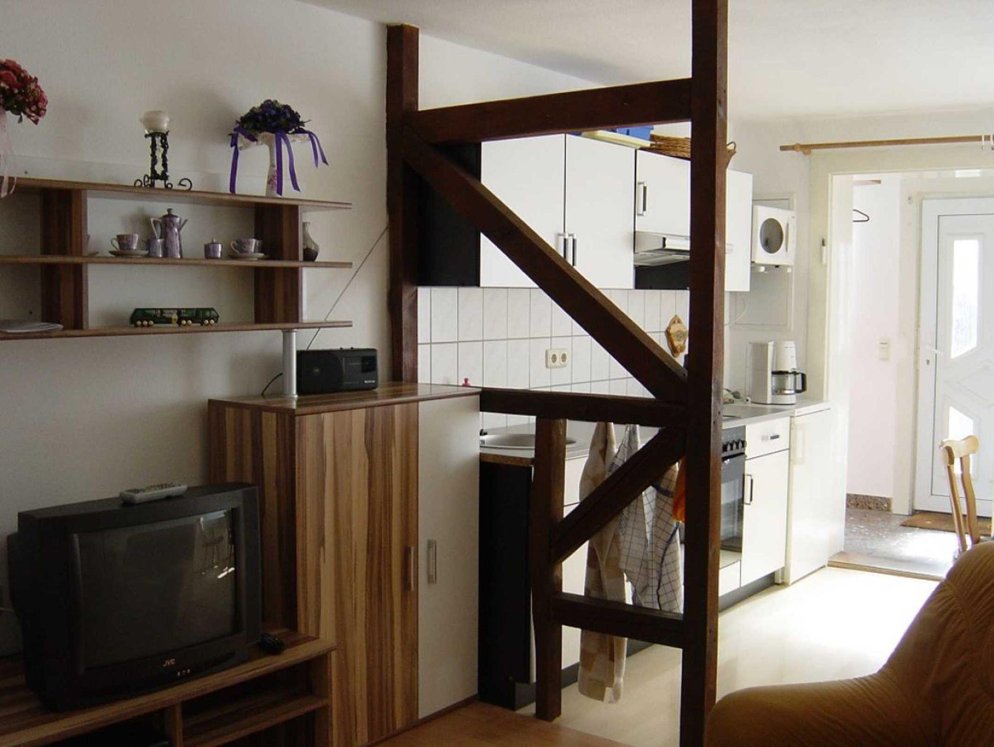 Aufteilung: Wohnbereich mit offener Küche, Schlafzimmer mit Doppelbett ( Durchgangszimmer zum Badzimmer ), 2 weitere Schlafzimmer im ausgebauten Dachgeschoss mit 3 Einzelbetten, Badezimmer mit Dusche/WC