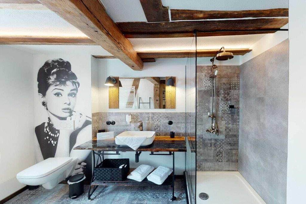 Das historische Fachwerkhaus in Bad Berleburg verzaubert Sie mit charmanten Details, einzigartigem Stil und Gemütlichkeit pur. Machen Sie es sich bequem zwischen rustikaler Architektur und ikonischen Design-Elementen. In unseren Appartements genießen Sie mit zwei oder drei Personen höchsten Komfort. Wohnzimmer und Schlafbereich laden mit kuscheligen Textilien zum Entspannen ein. Die Kitchenette ist das moderne Herzstück jedes Appartements und vielseitig ausgestattet, um Snacks und kleine Mahlzeiten zuzubereiten. Bei der morgendlichen Dusche werden Sie wahlweise von Audrey Hepburn, Marlon Brando oder Sean Connery begleitet - wer kann da schon Nein sagen?
