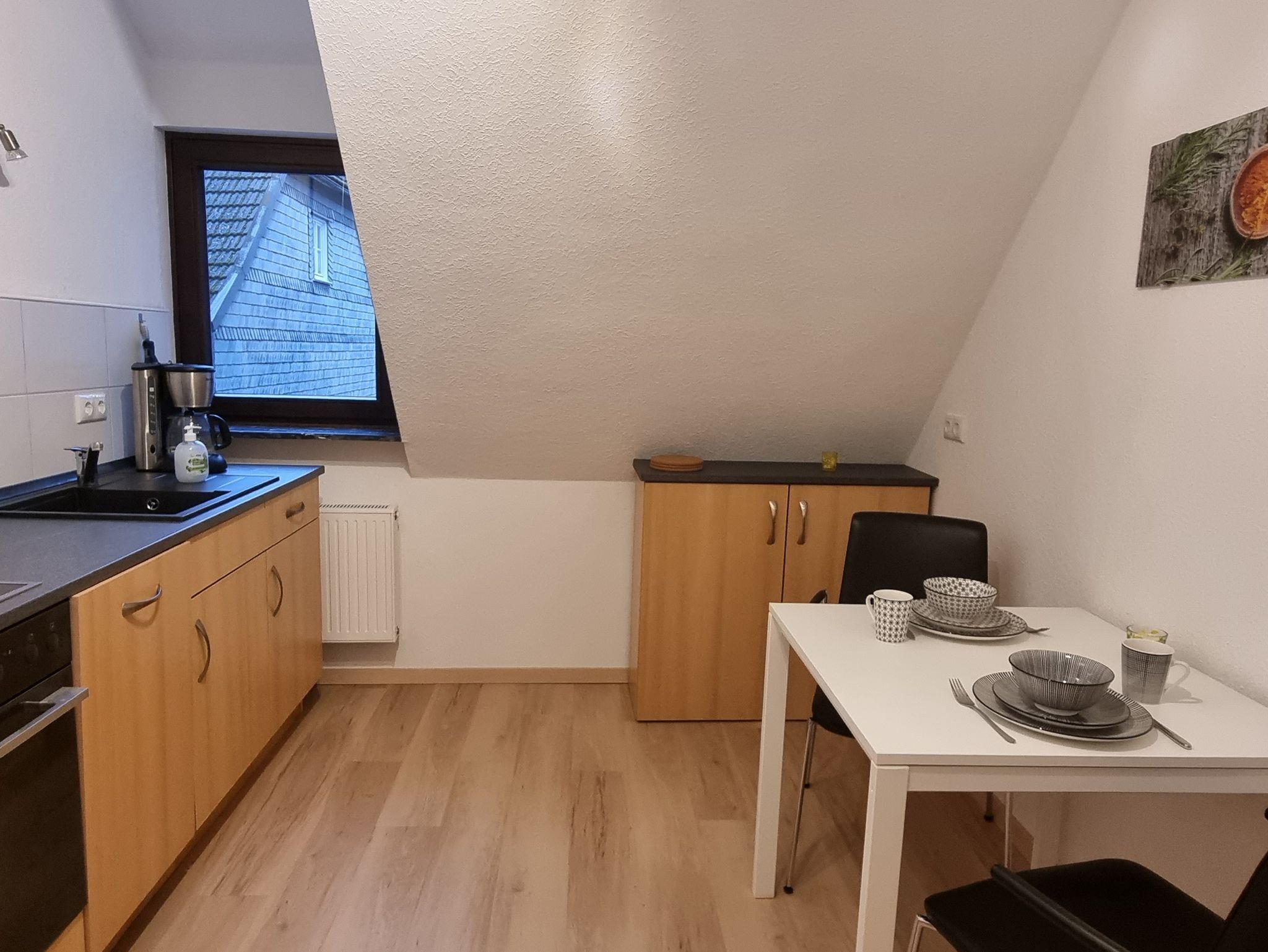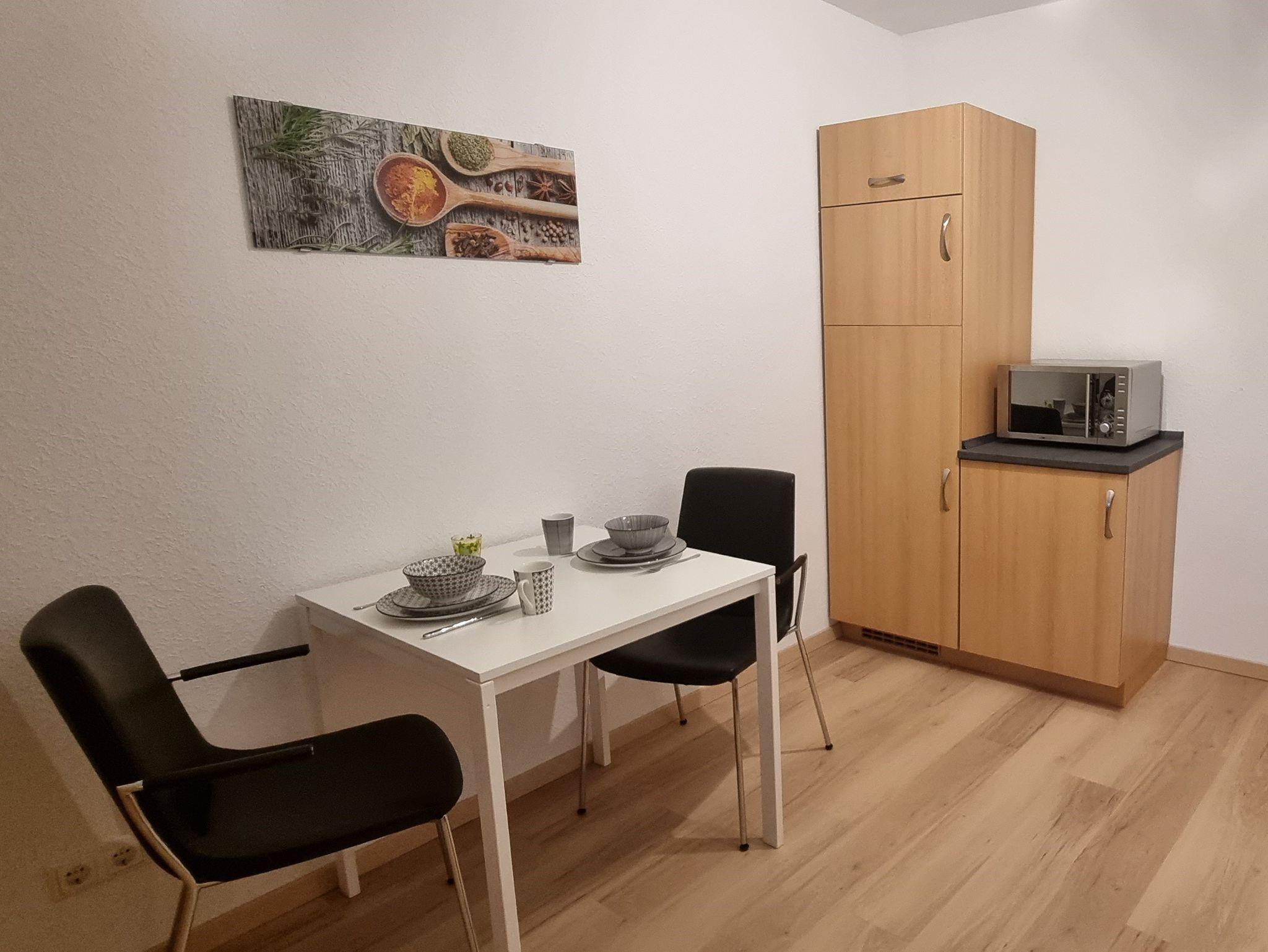 Die 35 m² große und frisch renovierte Wohnung für 2 Personen besteht aus einem Wohn-/ Schlafzimmer, einer Küche mit Essbereich und einem Badezimmer. Eine gemütliche Sitzecke mit Sofa und einem Flachbildfernseher laden zum Verweilen im Wohnbereich ein. Der Schlafbereich hat ein großes Bett 1,80m x 2,00m und einen Kleiderschrank. Die Küche ist ausgestattet mit einem Herd, Backofen, Geschirrspülmaschine, Mikrowelle, Geschirr, Kaffeemaschine, Kühlschrank mit Gefrierfach und Wasserkocher. Das Badezimmer mit Fenster verfügt über eine Dusche, Waschbecken mit Spiegel, WC und Föhn. WLAN ist vorhanden.