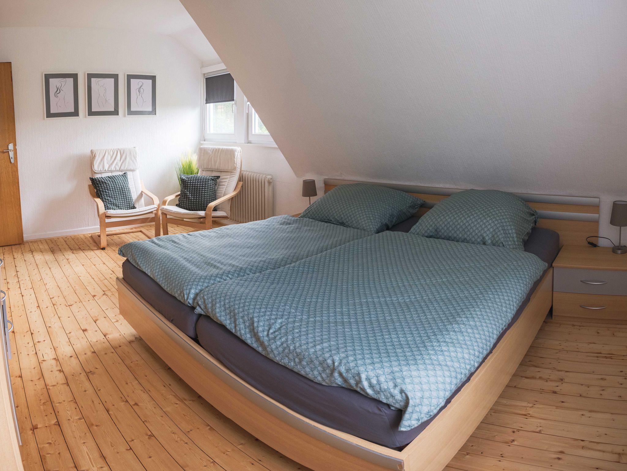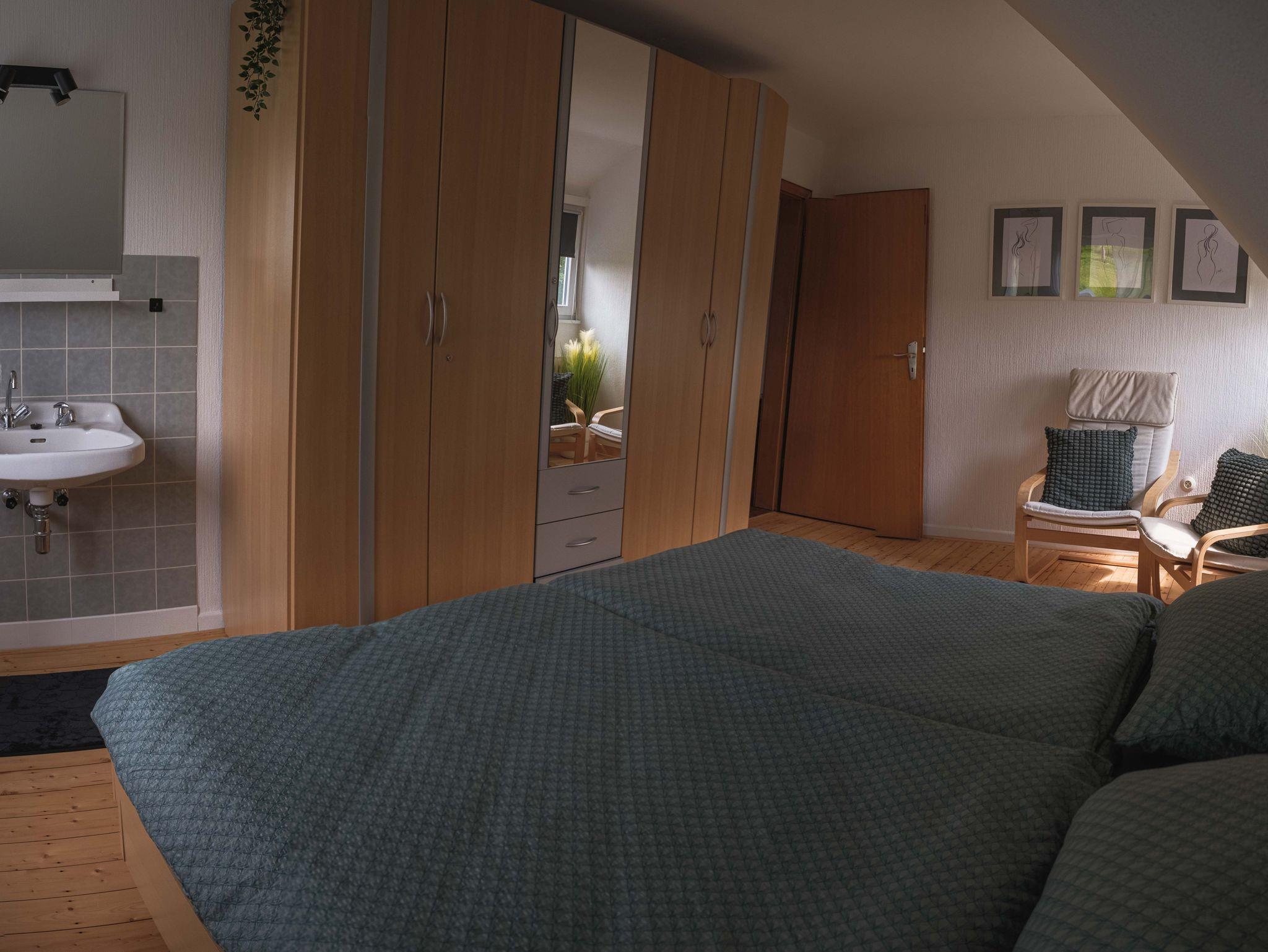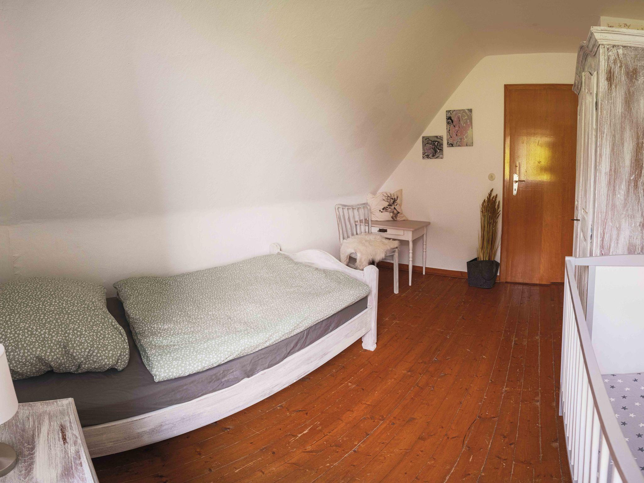 Im Obergeschoss finden Sie die zwei weiteren Doppelzimmer (davon eins mit Waschgelegenheit) und ein Einzelzimmer. In dieser Etage ist das zweite Bad.