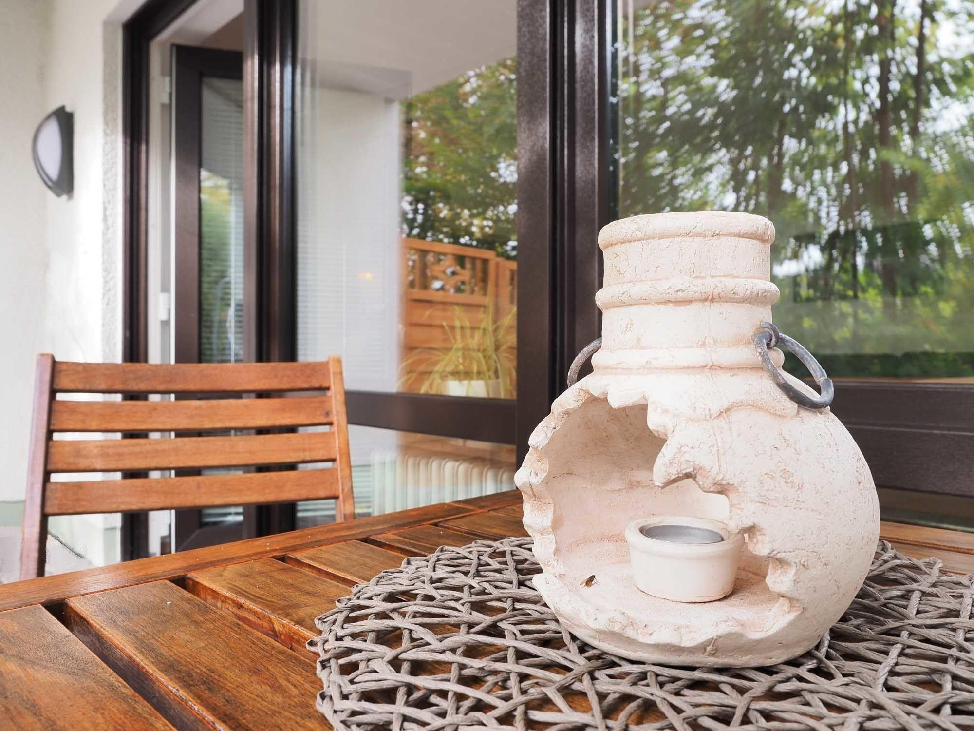 Unsere Feriengäste genießen einen eigenen, abgetrennten Terrassenbereich mit schönem Blick in den Garten.