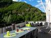 Terrasse: große Terrasse mit tollem Ausblick in die Natur und über den Ort, Lounge-Sitzgarnitur (Tiefsitzer), Extra-Sitzauflagen und Kissen, Sonnenliegen, großer Auszieh-Gartentisch (bis 12 Personen)