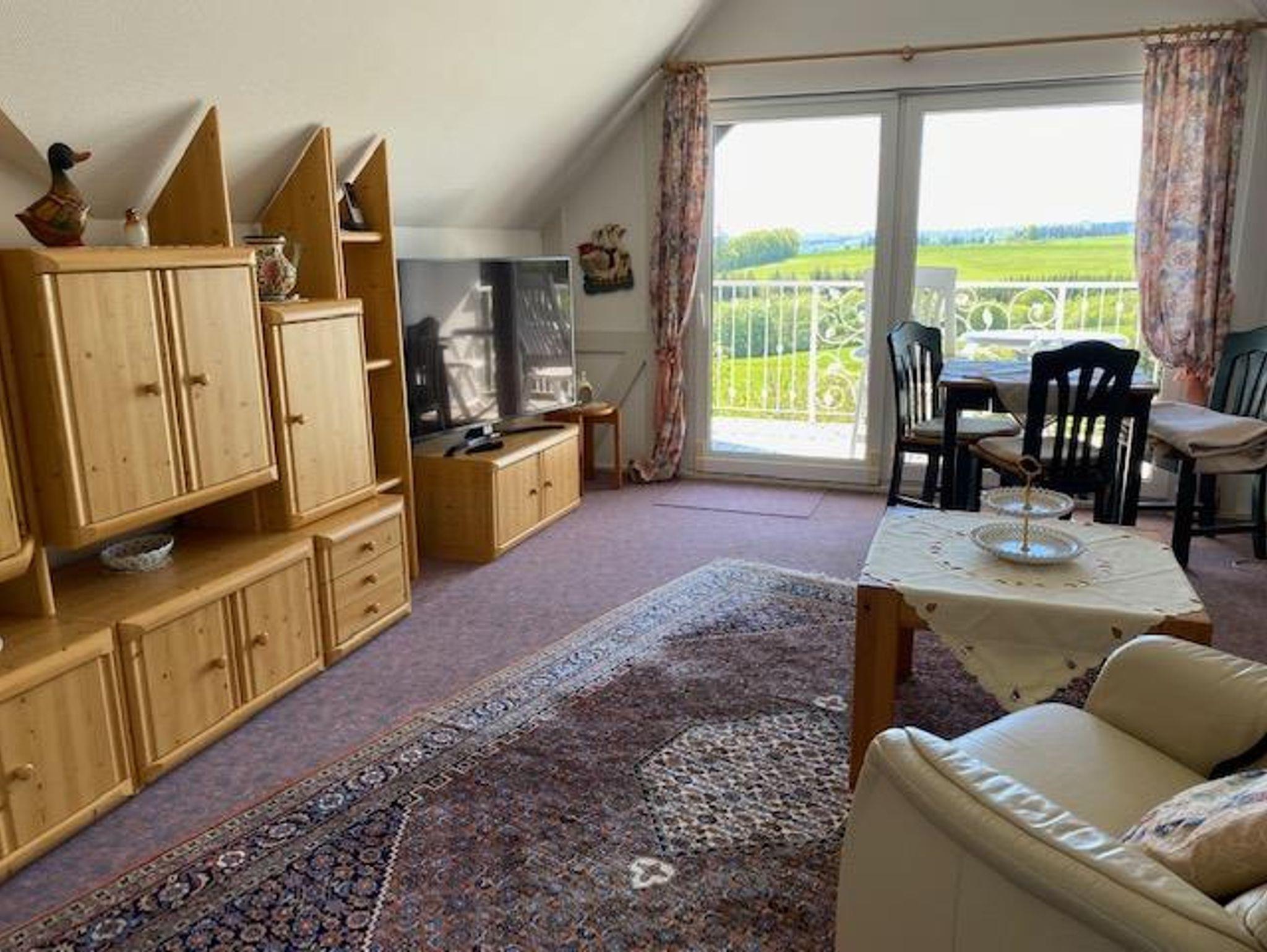 Wohnzimmer mit gehobener Ausstattung, Ausziehcouch, Flachbildschirm, Radio, W-Lan sowie Balkon mit Weitblick, Gartennutzung
