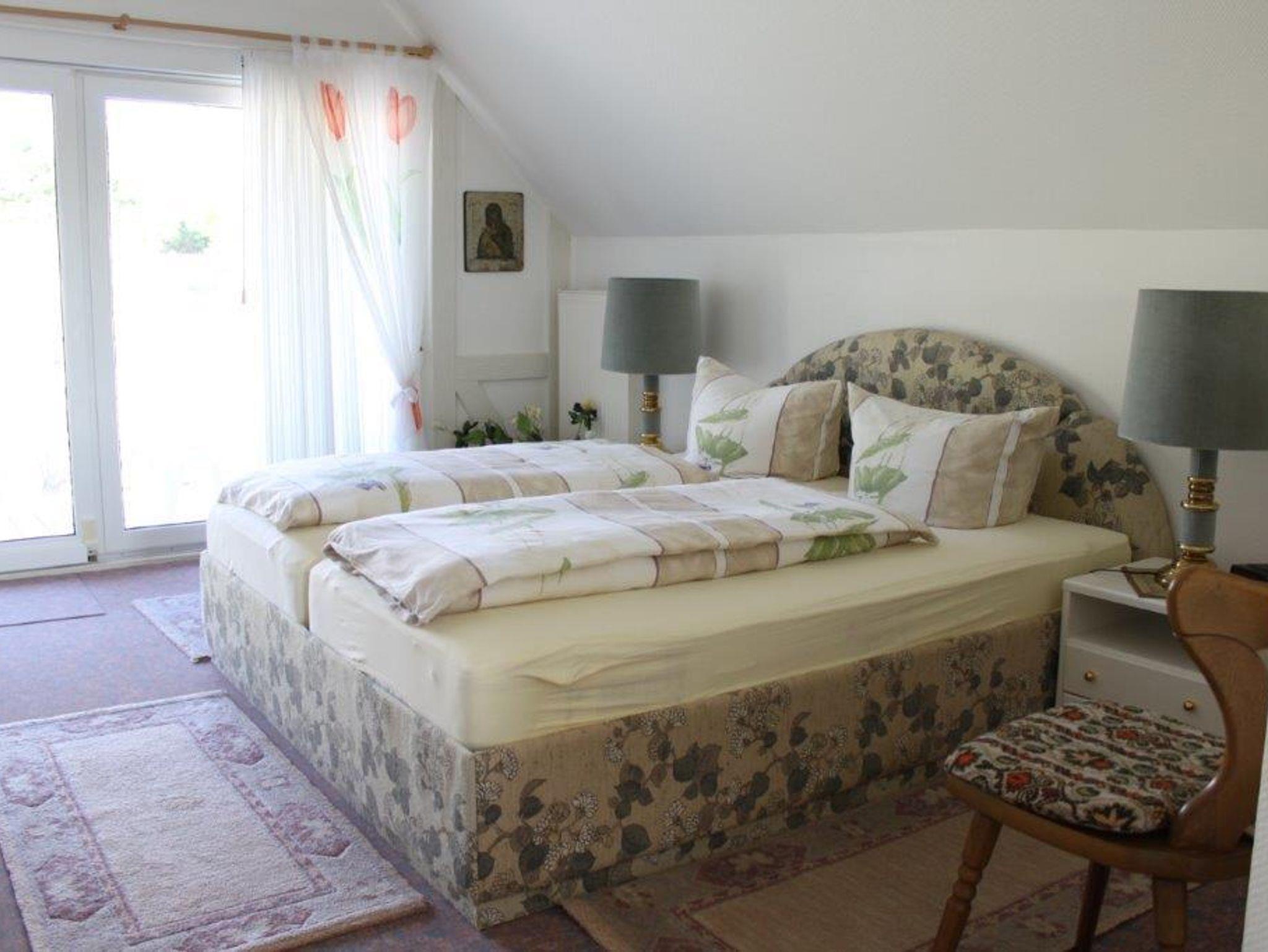 Schlafzimmer mit 1 Doppelbett + 1 Einzelbettbett, Ausgang zum 2. Balkon - ein Haustier darf hier leider nicht mitgebracht werden.