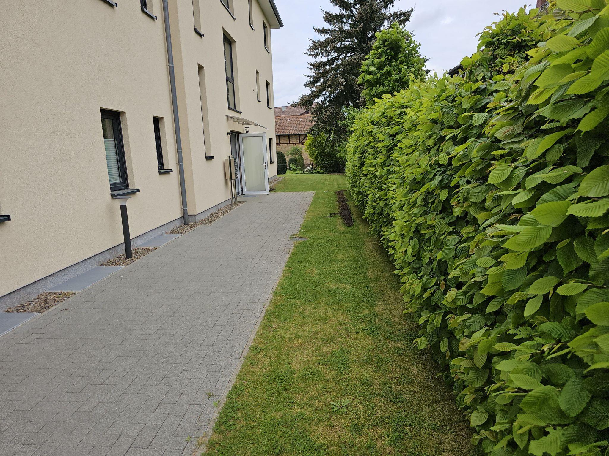 Our holiday flat is located in a quiet cul-de-sac, yet central and close to all important facilities such as doctors' surgeries, pharmacies, post office, church, railway and shopping facilities such as NARR bakery, EDEKA and ALDI. A private covered parking space for your car is included.