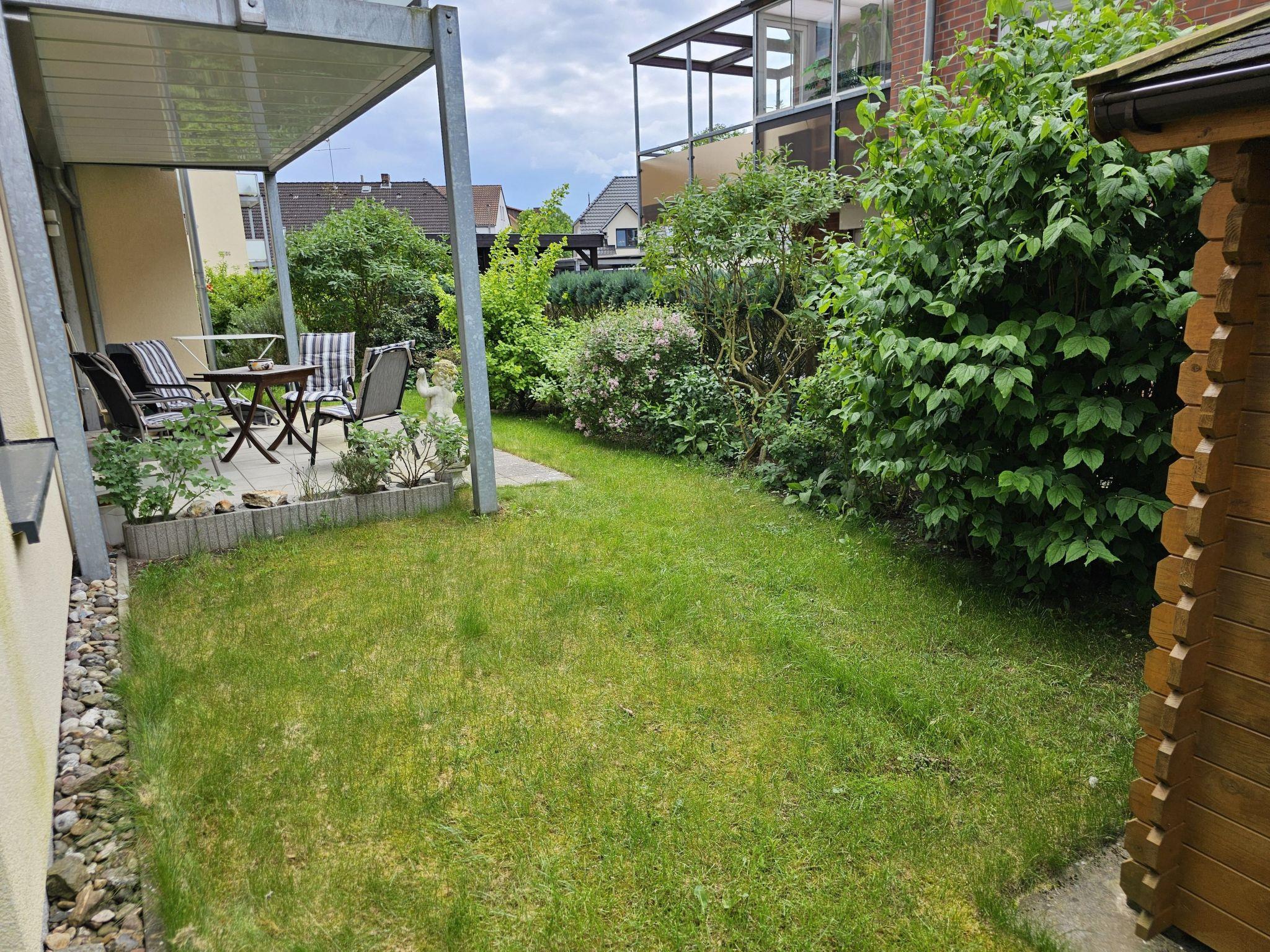 Own garden, covered terrace, central location in a quiet cul-de-sac, covered parking space, walk-in shower, fully equipped kitchen and much more.